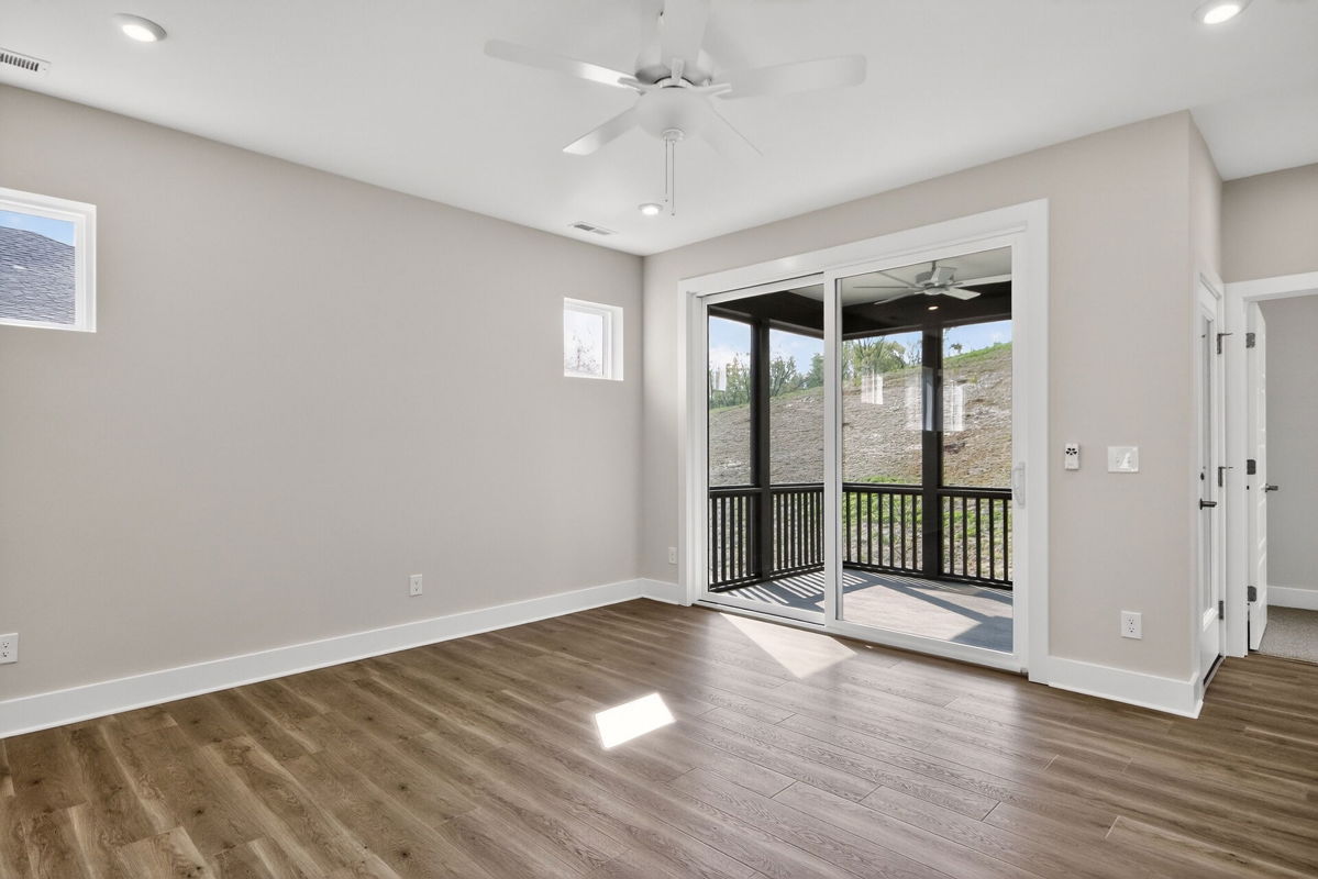 A private primary suite on the main level offers a peaceful retreat, featuring a spa-inspired bath and ample closet space designed for comfort and convenience. An additional bedroom and flexible spaces provide the ideal setting for visiting guests, hobbies, or a home office—giving you room to grow without sacrificing ease.