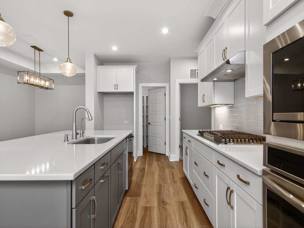 At the heart of the home, the gourmet kitchen features a gas cooktop, built-in wall oven, spacious working island and expansive walk-in pantry. The kitchen flows seamlessly into the dining and family areas, creating a connected space that feels warm and functional.
