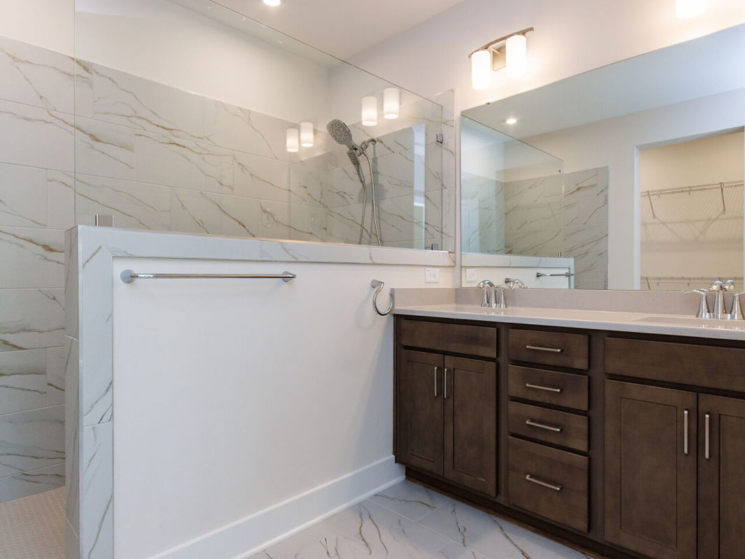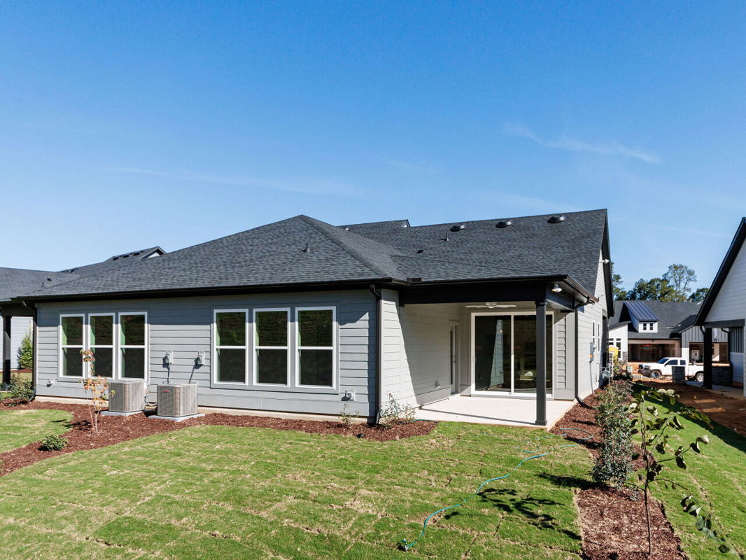The kitchen flows seamlessly into the dining and family spaces, creating an intuitive, welcoming atmosphere. Retreat to the owner’s suite with a spa-inspired, zero-threshold super shower, handheld showerhead, and a spacious walk-in closet for added luxury and convenience. A secondary bedroom and full bathroom provide comfortable space for guests or use as a home office. Enjoy the outdoors on your covered rear porch — a peaceful spot to relax and unwind.