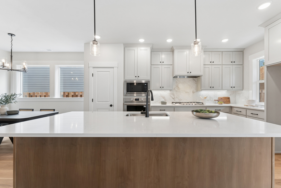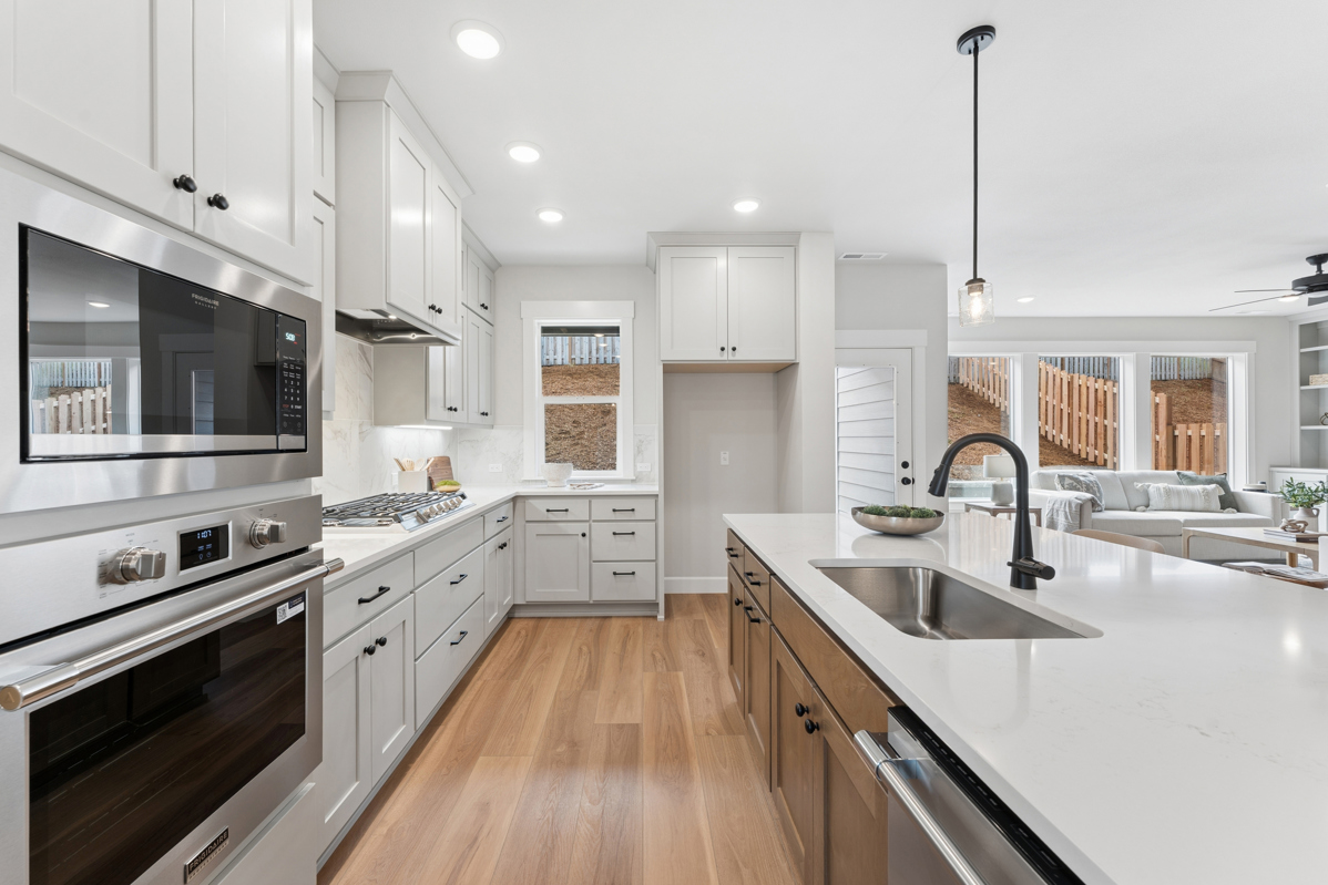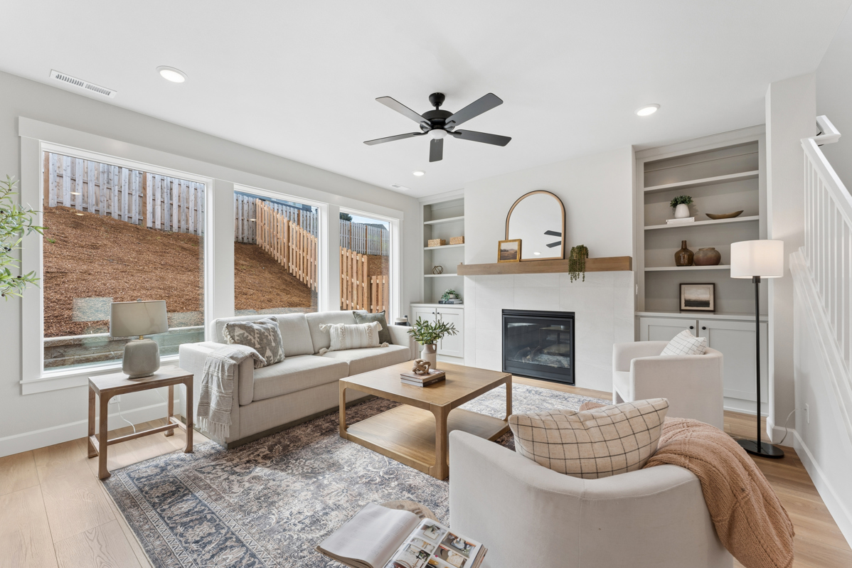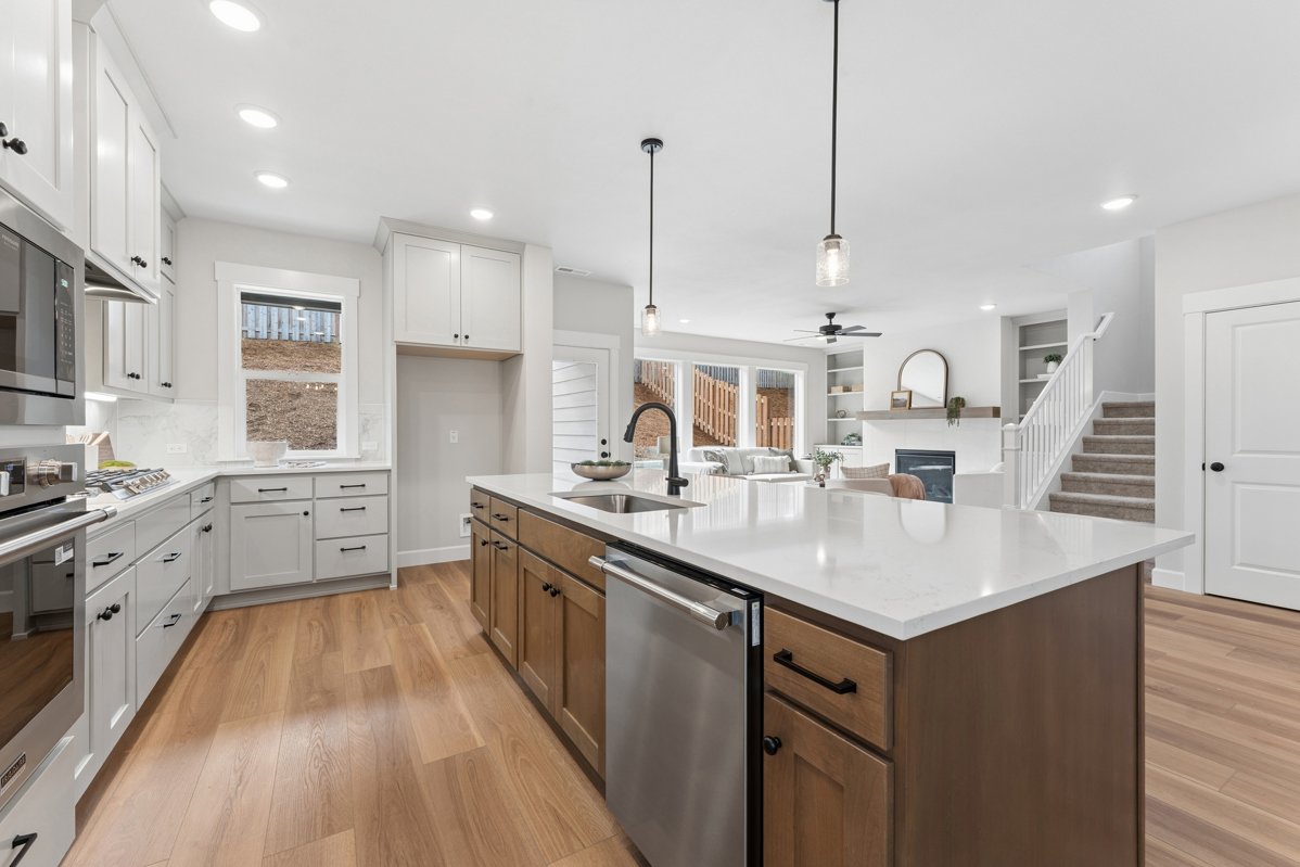 Spacious main level includes a bedroom and full bathroom, a den with french door entry and comfortable Great Room. Quartz kitchen countertops, wide format tile backsplash, Shaker Style cabinets, and Luxury Vinyl Plank flooring in the open Island Kitchen with spacious breakfast bar. Relax by the fireplace in the living area or host a dinner party in the dining area, this home provides space for lots of options!