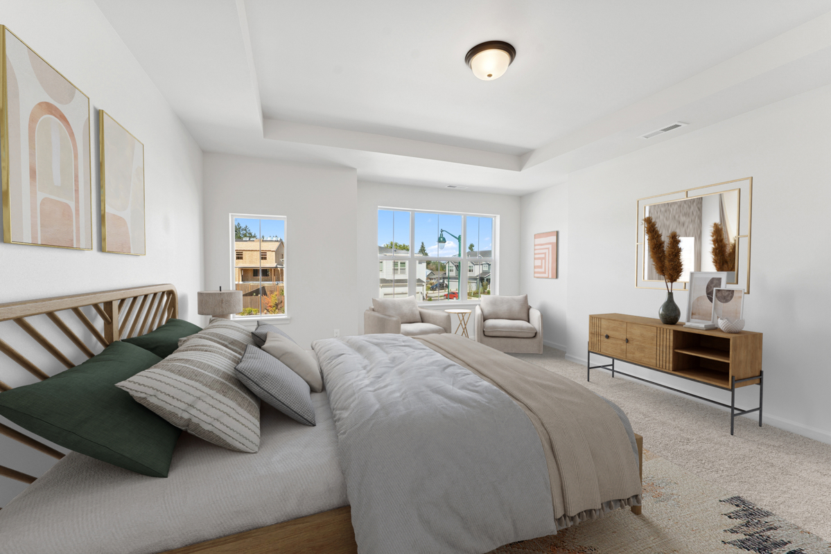 The Moreland at Parkview Terrace in Forest Grove is one of our most popular designs, offering generous backyards and covered patios to enjoy Oregon weather year-round. Milgard windows throughout bring in natural light, highlighting the home’s exquisite finishes. Open gathering spaces connect the dining, kitchen, and family room, creating the perfect setting for both everyday living and entertaining.