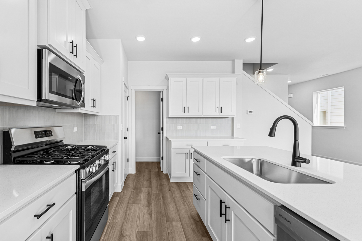 The designer kitchen features a large presentation island and stylish cabinetry, perfect for both everyday living and entertaining. The Primary Bedroom is set apart from the secondary bedrooms, giving you a quiet, private retreat within your home.