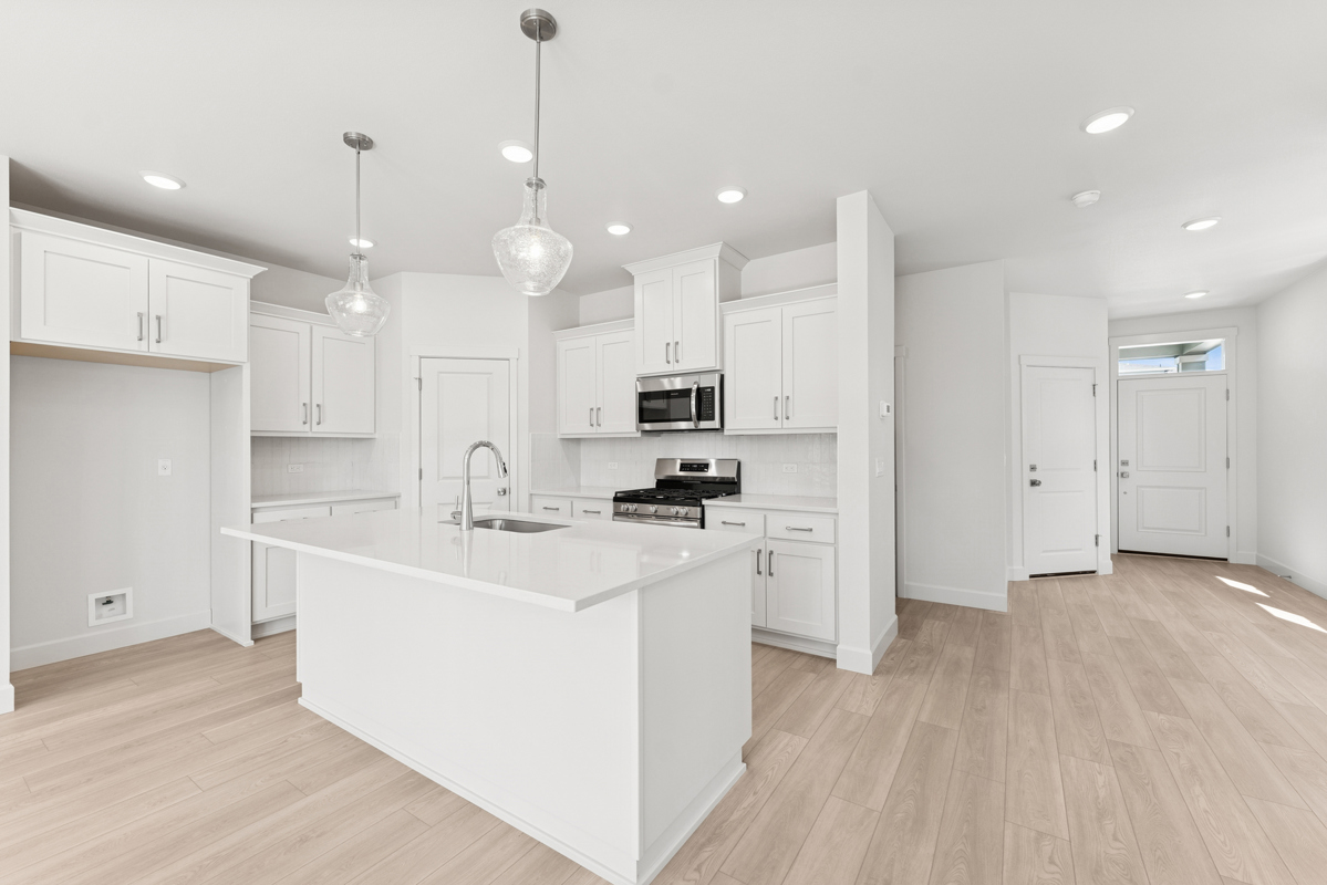 Upstairs, you'll find all bedrooms thoughtfully arranged around a central loft—an ideal flex space for a reading nook, play area, or home office. The lower level is designed for gathering, featuring an open-concept layout with expansive living, dining, and kitchen spaces that make it easy to stay connected. Oversized Milgard windows bring in an abundance of natural light, creating a warm and inviting atmosphere throughout.