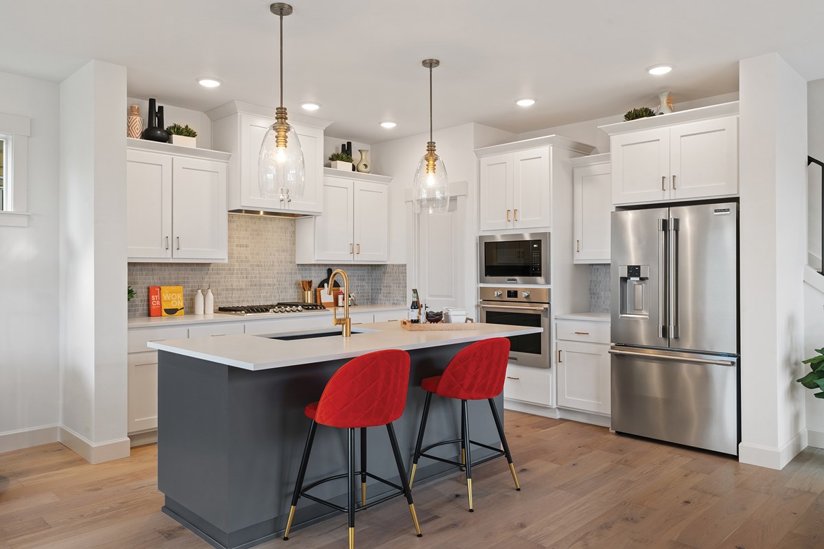Your open family and dining spaces are surrounded by big, energy-efficient windows to allow every day to shine. The contemporary kitchen is optimized to support solo chefs and family cooking adventures with a presentation island and easy style.
