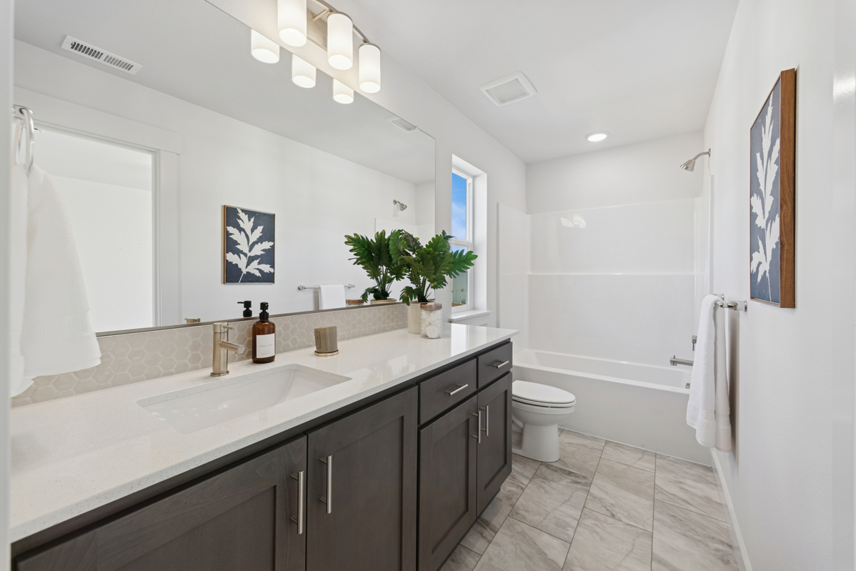 Popular Providence Plan! This home has tons of windows to let in all kinds of natural light, bright open Living spaces with Family Dining and Kicthen all open to each other. Upstairs, you will find two generously sized secondary bedrooms, Laundry and Primary Bedroom. Exquisite finishes throughout, with quartz, designer cabinetry and drop zone at rear entry for backpacks, jacktes and shoes. Come see today this lovely plan that so many have fallen in love with!