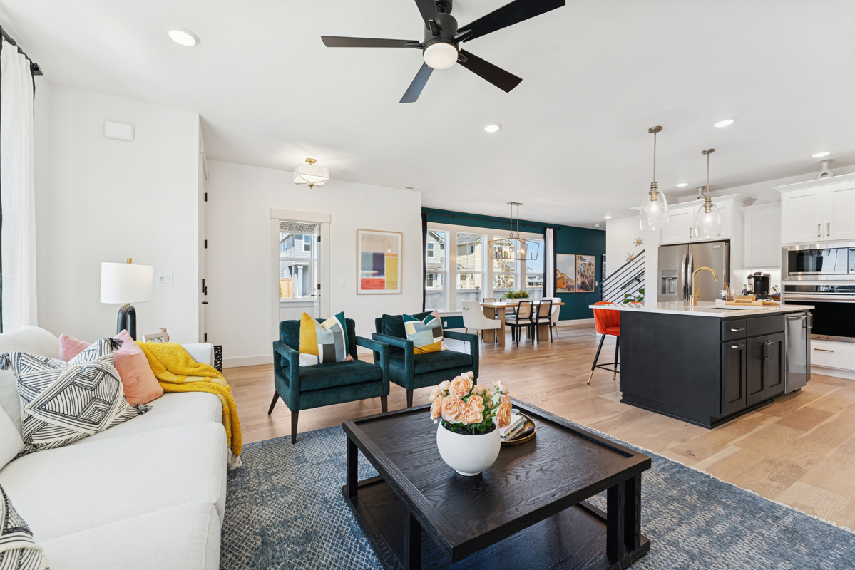Your open family and dining spaces are surrounded by big, energy-efficient windows to allow every day to shine. The contemporary kitchen is optimized to support solo chefs and family cooking adventures with a presentation island and easy style.
