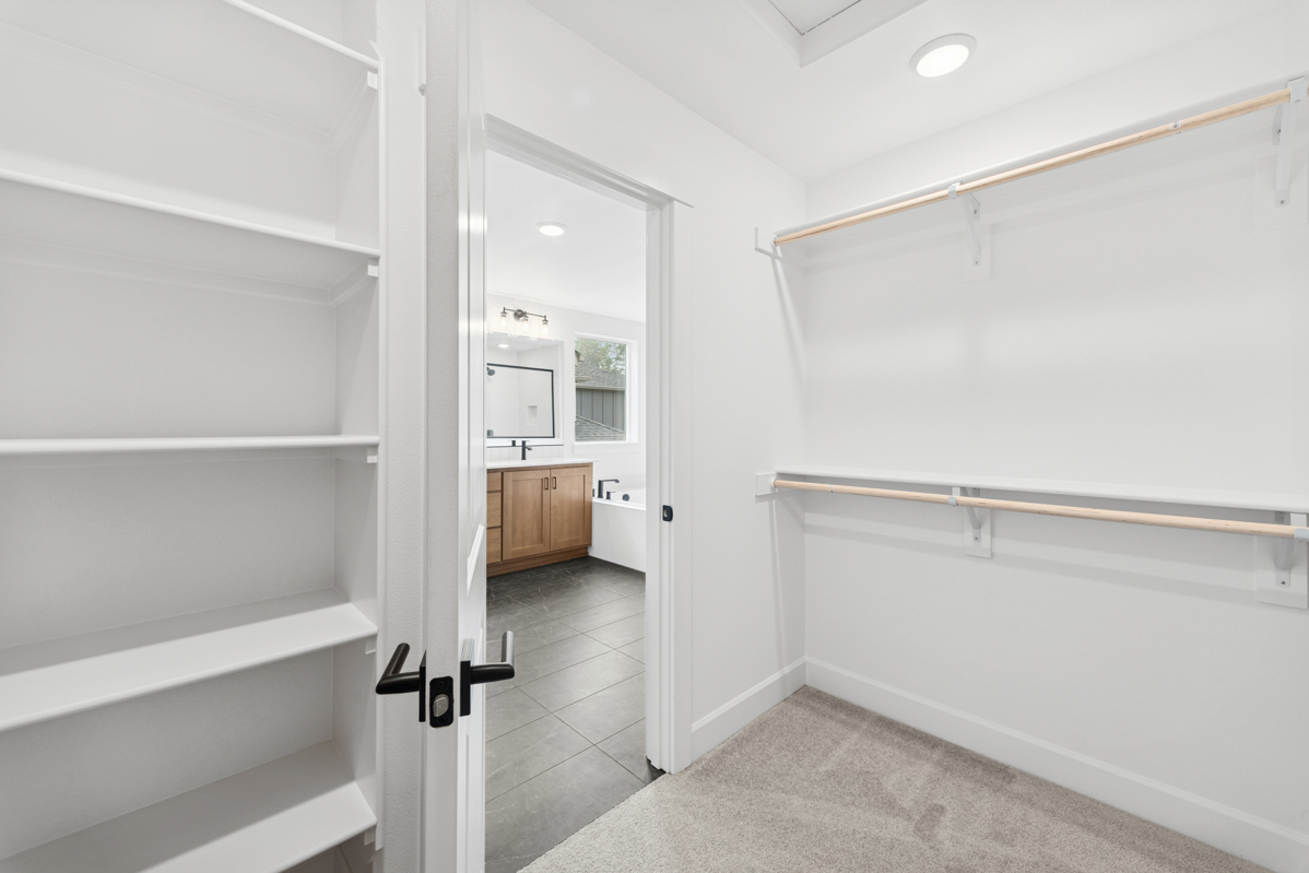 The spa-like bath includes a soaking tub, walk-in shower and a spacious walk-in closet for clothing storage.