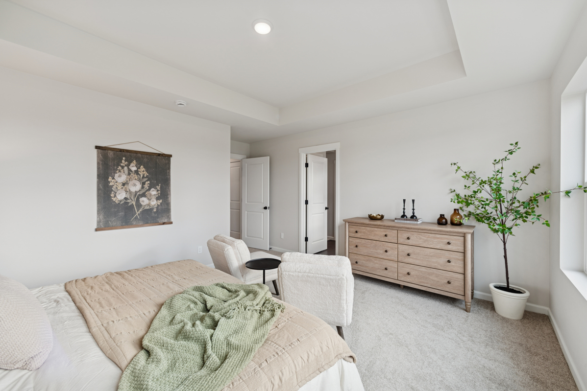 The family room features a cozy fireplace, and the kitchen offers a wood-wrapped island, upgraded quartz counters, an under-mount sink, and a pantry. Upstairs, you’ll find a cozy loft and two bedrooms, one with a Jack-and-Jill bathroom setup, perfect for creating a second bedroom with an en-suite bath. The Owner’s Retreat includes a spacious en-suite Owner’s Bath with double sinks and a large, dreamy closet.