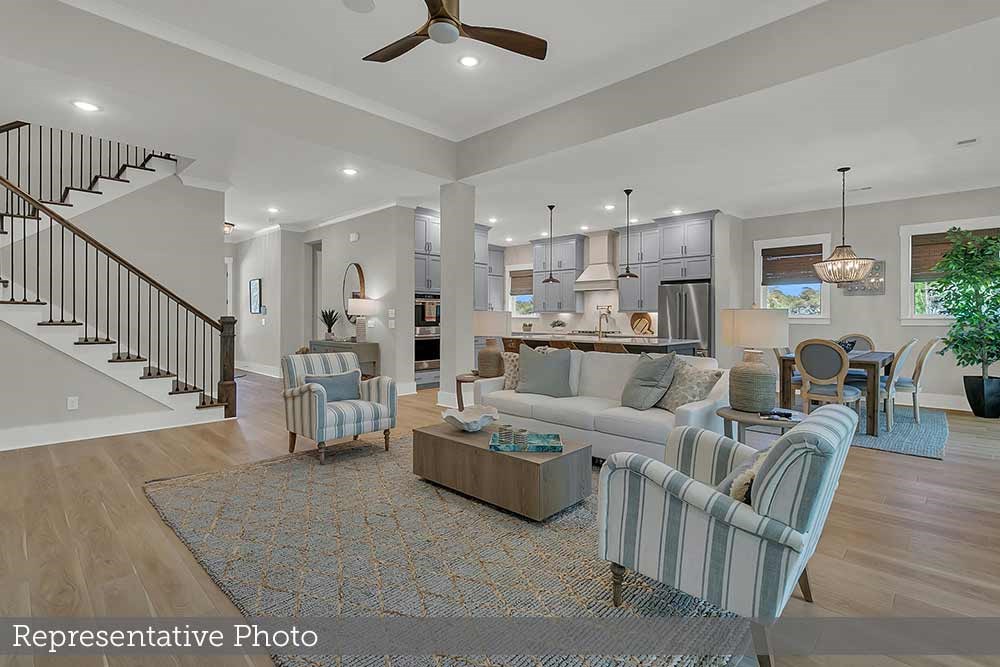 Situated on a rare .60-acre corner lot with no HOA, this thoughtfully designed new construction home offers refined Lowcountry living just minutes from Johns Island conveniences. A welcoming front porch sets the tone for an interior that blends timeless architecture with modern comfort. The open floor plan is filled with natural light and designed for both everyday living and effortless entertaining. A dedicated study near the entry provides the perfect space for a home office or private retreat. The gourmet kitchen anchors the home, featuring premium appliances, ceiling-height cabinetry, a generous walk-in pantry, and an oversized island that naturally draws people together. The living and dining areas flow seamlessly into an oversized screened porch through a wall of sliding glass doors creating an exceptional indoor-outdoor connection ideal for entertaining, relaxing, and enjoying outdoor living. The main-level owner's suite is a true retreat, offering a spa-inspired bath and a custom walk-in closet with direct access to the laundry and mudroom for added convenience. An additional first-floor guest suite provides flexible accommodations for visitors, family, or multi-generational living. Upstairs, a spacious loft creates a versatile second living area, complemented by two additional bedrooms and a shared bath perfect for children or guests. The oversized homesite is shaded by mature oak canopies and offers ample space for outdoor living, entertaining, and future customization. Ideally located near Freshfields Village, Kiawah Island, the new Lowe's Foods, local dining and shopping, and the iconic Angel Oak, this home delivers a rare balance of privacy, space, and accessibility. An exceptional opportunity to own a new construction home on Johns Island where thoughtful design, location, and lifestyle come together.