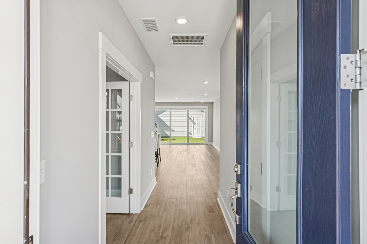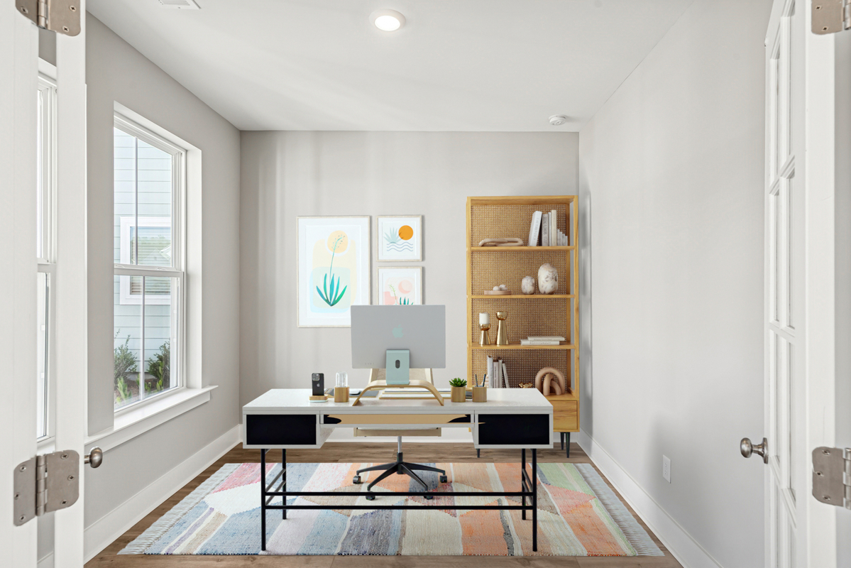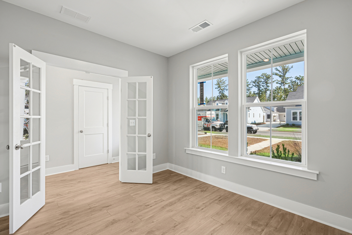 At the front of the home, a study with French doors offers a great space for a home office, homework station, or playroom.