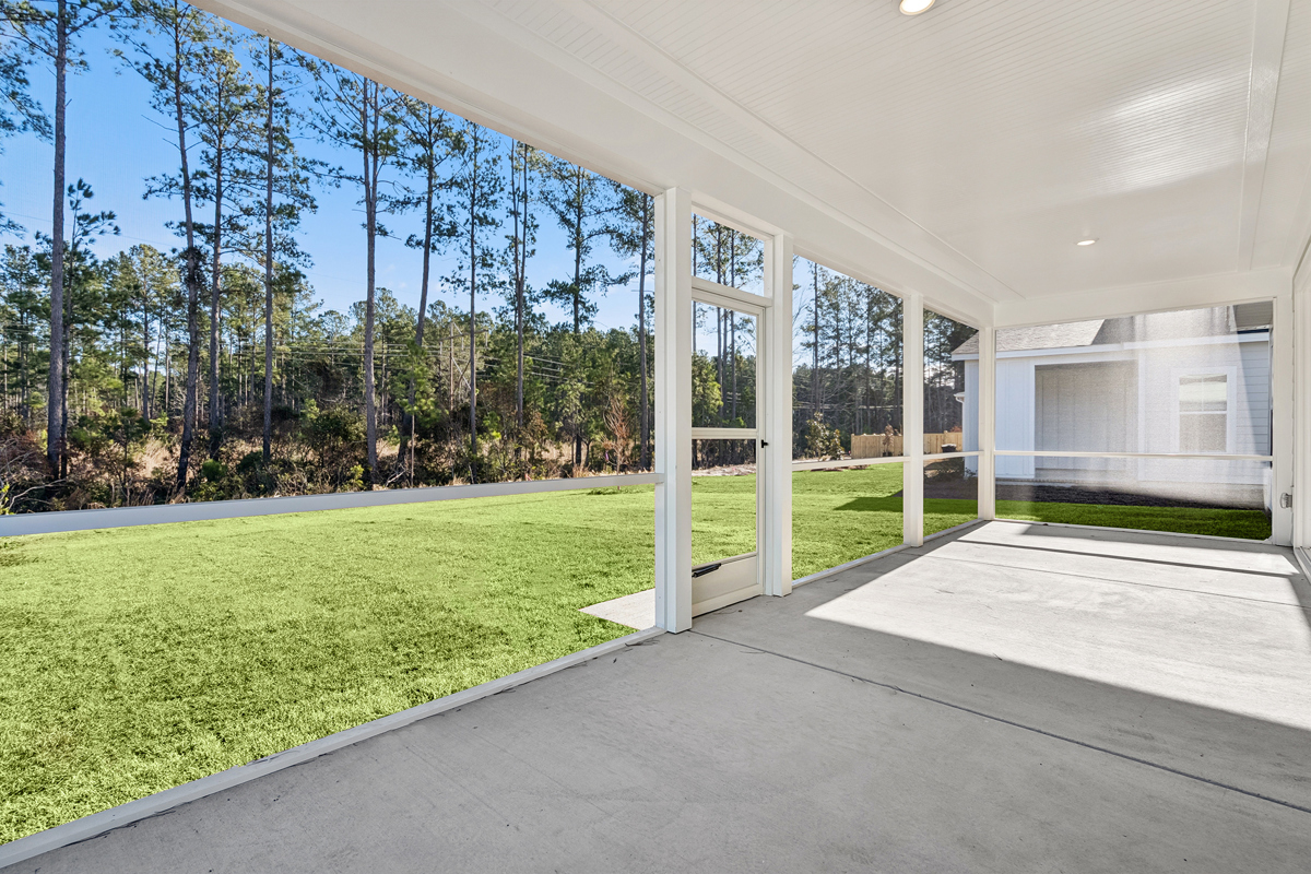 The family room includes 12-foot triple sliding glass doors that lead to an extended screened porch, perfect for creating an outdoor living or dining space. The porch overlooks a wooded buffer beyond the backyard, offering both privacy and natural beauty.