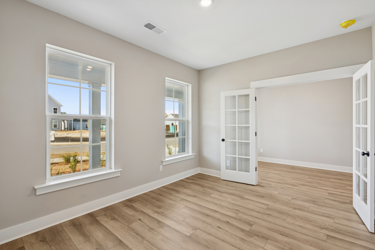 French doors at the study provide a quiet and private home office. The main floor Owner's Retreat offers serene backyard views and a spa-like Owner's Bath with a large walk-in shower.