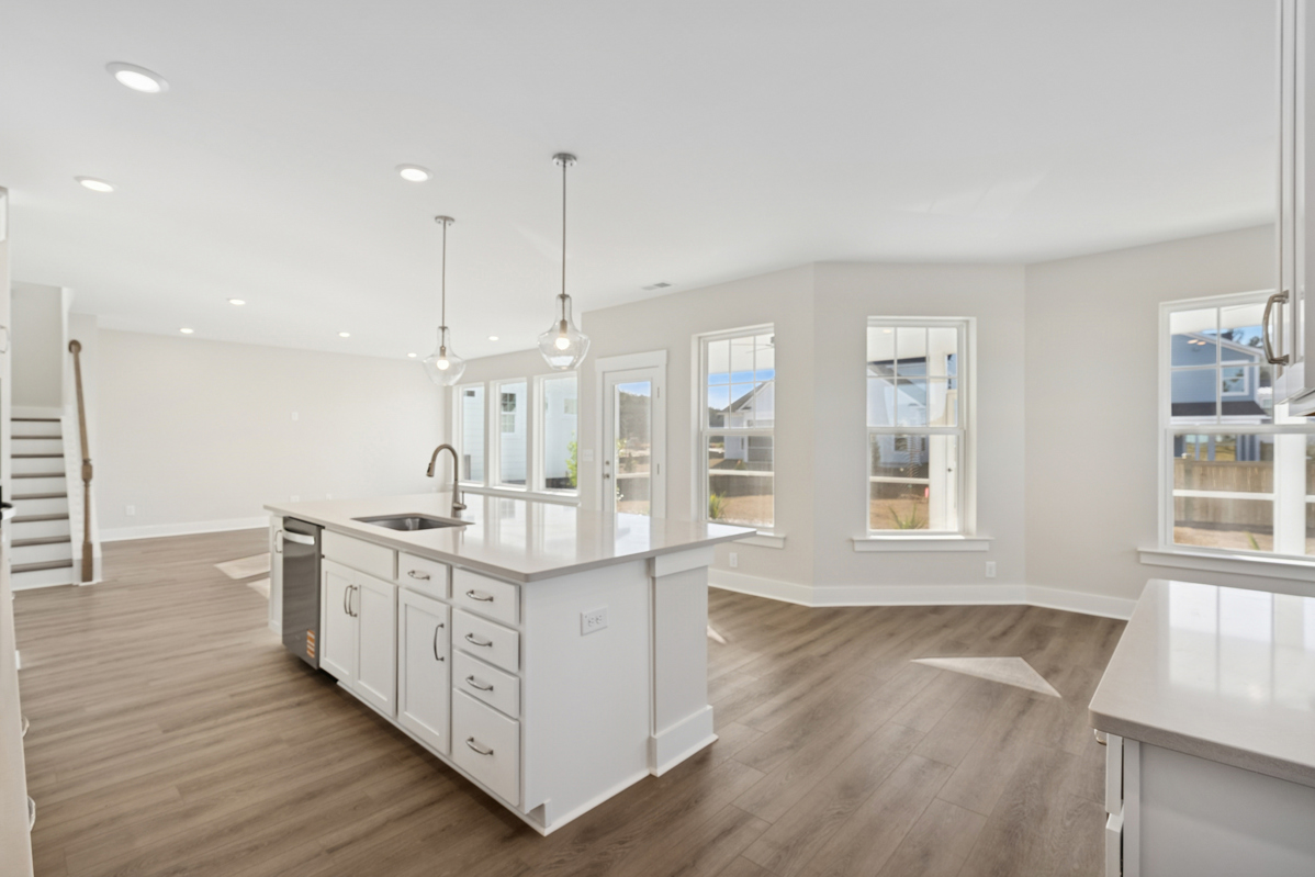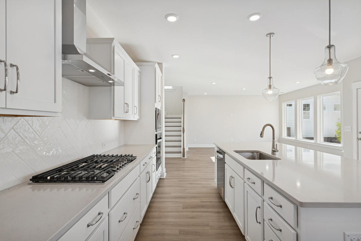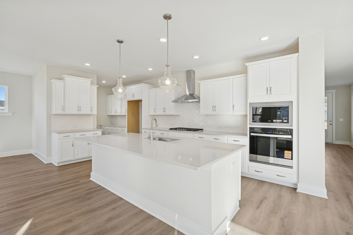The Bridges is an open-concept home designed for both everyday living and entertaining. The gourmet kitchen offers plenty of counter space, a butler’s pantry, and a center island that is perfect for meals, coffee, cocktails, and holidays. The kitchen overlooks a window-filled dining area and family room, while a large screened porch extends your living space outdoors.