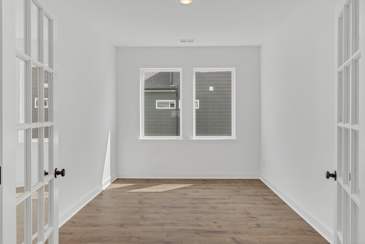 Welcome home to The Ginger single-story home with three bedrooms, two bathrooms, and an enclosed study with French doors.