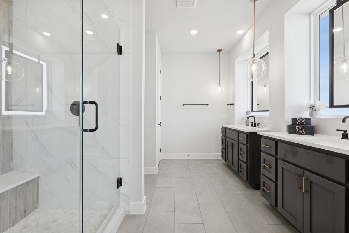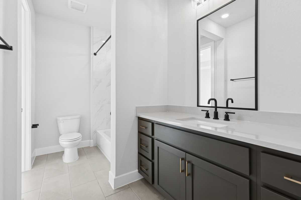 The Owner’s Retreat serves as a luxurious sanctuary, featuring a generous walk-in closet and a spa-inspired Owner’s Bath. Floating mirrors, sleek hardware and a glass-framed walk-in shower evoke a boutique hotel ambiance, ideal for morning calm or evening relaxation. Upstairs, Jack-and-Jill bedrooms offer versatile possibilities, from guest quarters to a creative studio or the perfect home office, all designed to complement your family’s dynamic lifestyle.