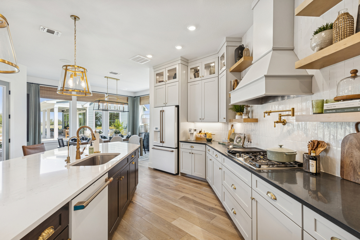 Our stunning model home and Casita in Leander Estates is for sale! Sitting on a one-acre homesite and boasting the best that David Weekley Homes has to offer, this model is not to be missed. The Monterey floorplan is open and bright with green accents flowing throughout. Your Kitchen features white GE Cafe appliances, floating shelves, cabinets to the ceiling, over-sized island and large pantry.