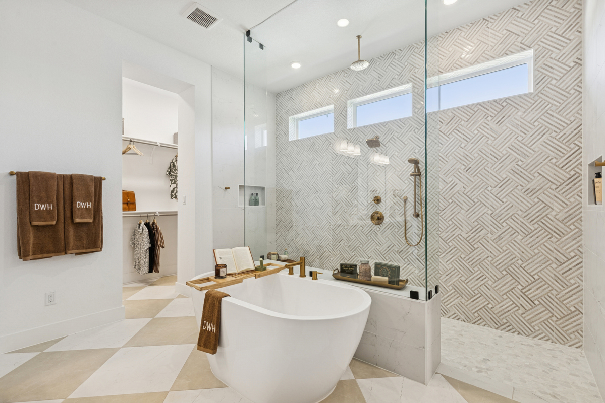 Step into the Owner's Retreat and find yourself swept away into a little piece of Heaven. Two separate closets, double vanity, free-standing tub and a stunning walk-in shower are the features of this Owner's Bath. An ideal spot to start and end your day, you may never want to leave.
