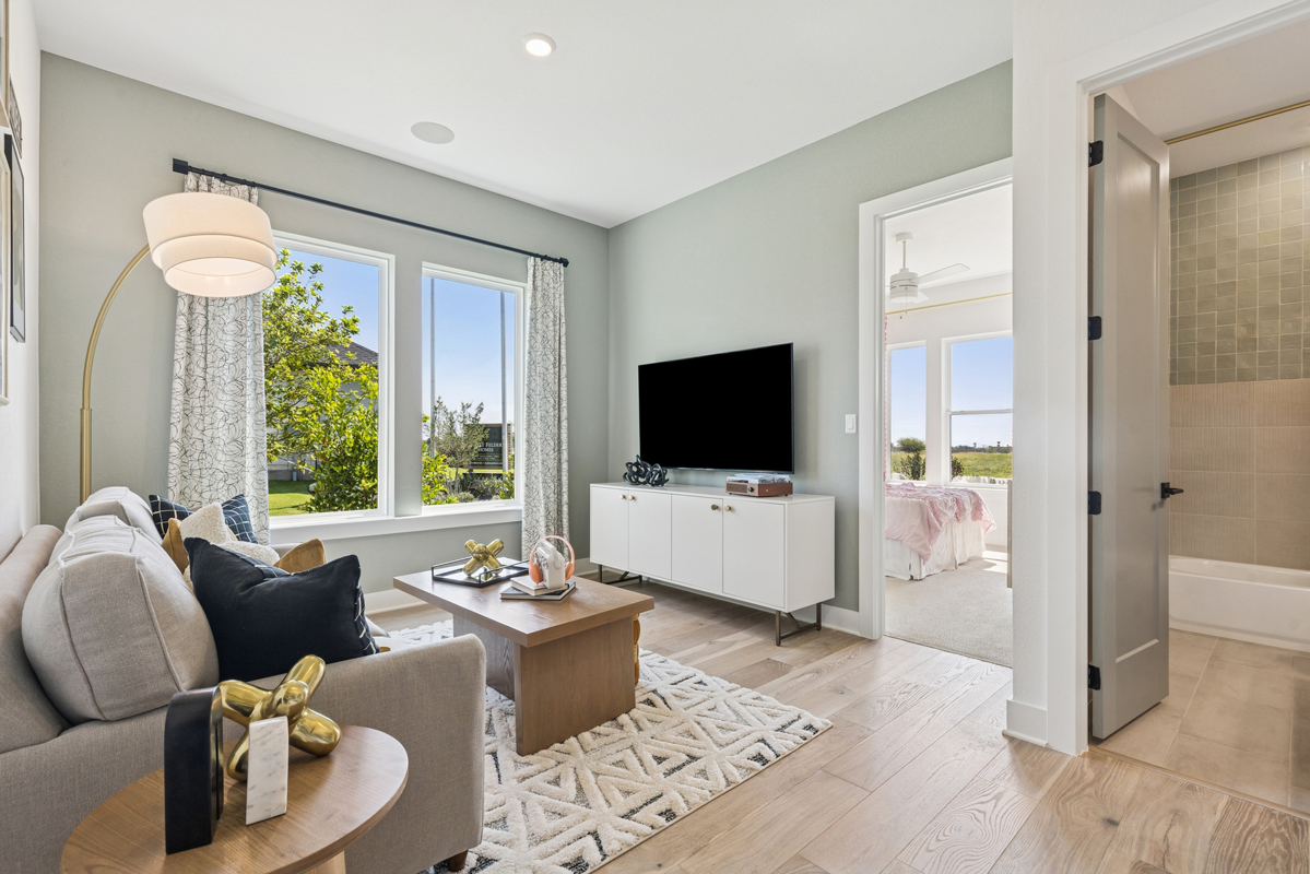 The intricate movement of the hardwood floors throughout will lead you on an adventure that you'll want to take day after day, so come see the sales team in Leander Estates to discuss leaseback terms and how to make your model home living dreams a reality. Pricing includes all furnishings. We can't wait to talk to you!