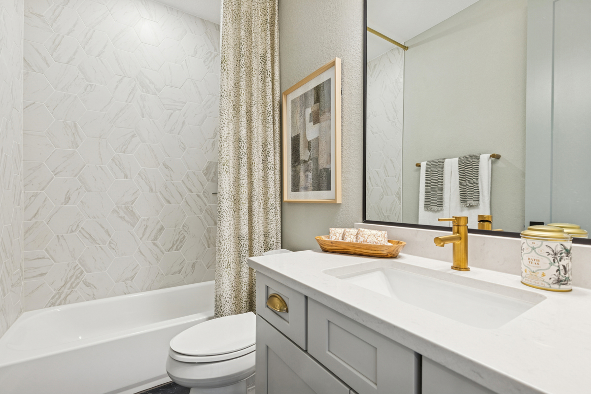 With an en-suite guest bedroom on one side of the home and two more secondary bedrooms that share a bathroom via a separating retreat space on the other, there is room for all. And don't forget to check out the massive bonus room upstairs, complete with full bath and walk-in attic access. While you're up there, check out the backyard layout with upgraded landscaping and a pool beautifully framed by our detached Casita.