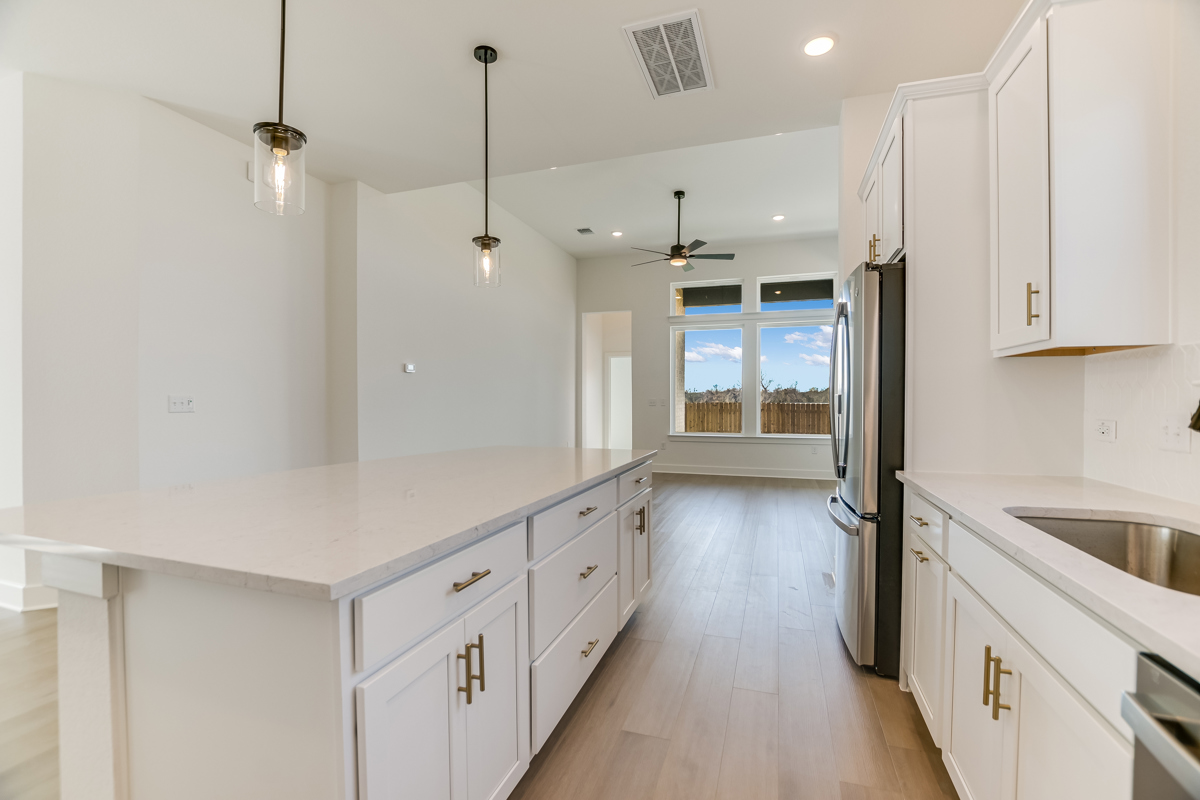 This beautiful east-facing home offers a wonderful layout with two bedrooms and two full bathrooms conveniently located on the first floor. Designed for comfort and functionality, it provides both privacy and open living spaces perfect for family and guests alike with 5 bedrooms and 4 bathrooms total. This homesite is truly special, tucked into a half cul-de-sac, offering additional space and privacy. With only one neighboring home, you’ll enjoy serene views as your backyard opens to lush green space and Divine Lake Park. It’s an ideal setting that combines natural beauty with everyday convenience. Discover the unmatched craftsmanship of a David Weekley Home, perfectly set in a vibrant and fast-growing City of Leander, Texas! Please reach out to your South Brook Team today for an appointment!