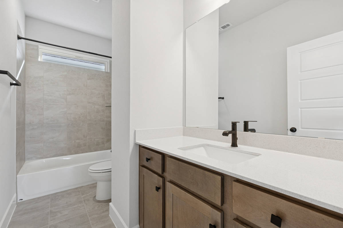 Brilliant comforts and easy elegance await around every corner of this new home in the Round Rock, Texas, community of Double Creek Crossing. This thoughtfully designed two-story home expertly blends open-concept living with ample privacy for your peace-of-mind.