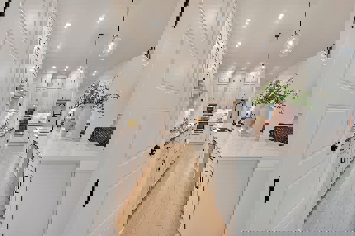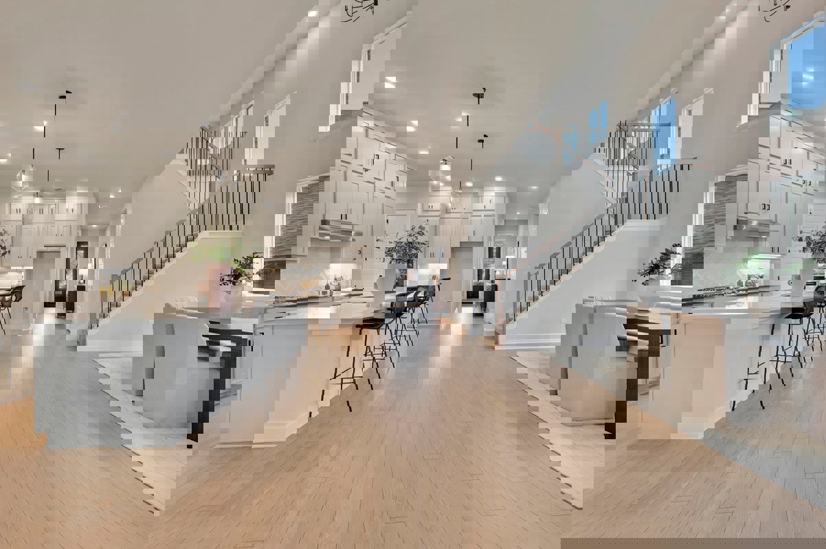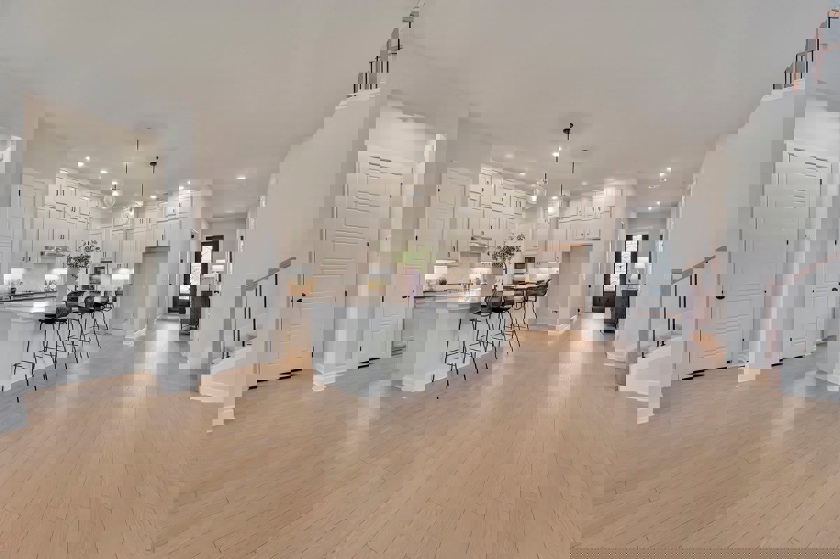The bright and roomy kitchen features a built-in gas cook top and ample cabinet storage. Enjoy splendid gatherings in the open-concept family room, dining room and kitchen.