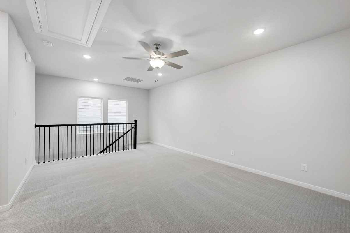 At the top of the second floor, a retreat awaits to be used as a game room, reading nook or gathering area for children or guests. Secondary bedrooms – including one with a unique balcony feature – share access to a full bath and offer generous space for growing personalities, guests, or maybe even your dream study.
