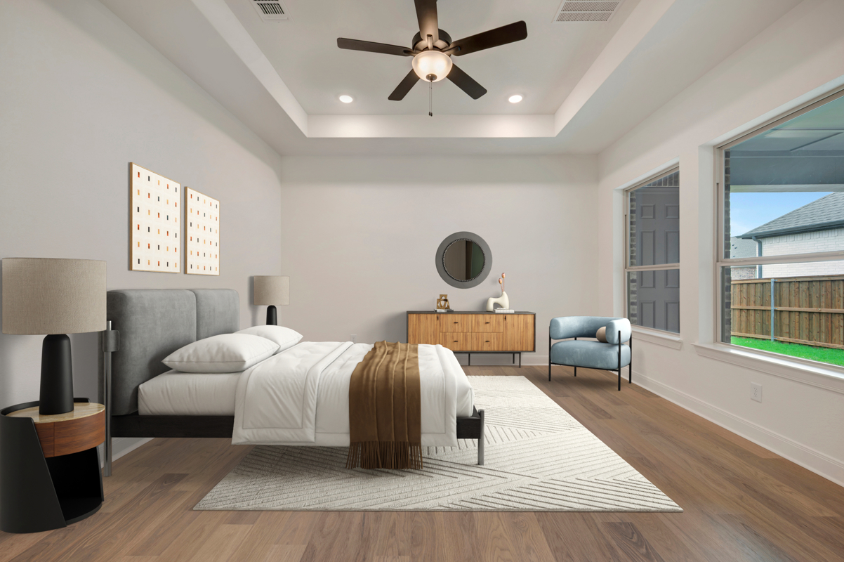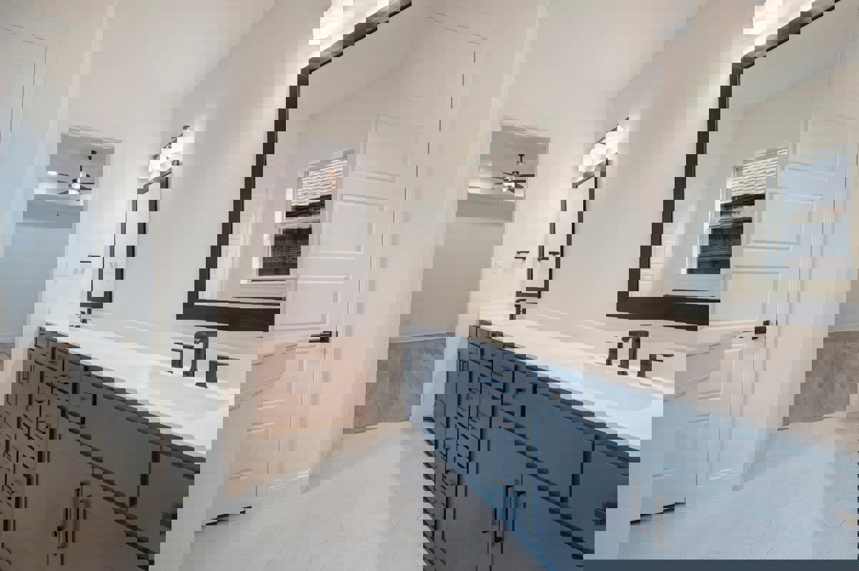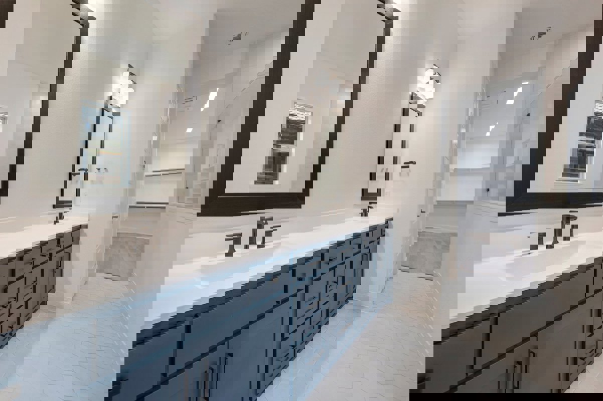 The Owner's Bath offers a spa inspired retreat with coordinated cabinetry, matte black fixtures and thoughtfully selected lighting. This space is designed to support relaxation and daily comfort.
