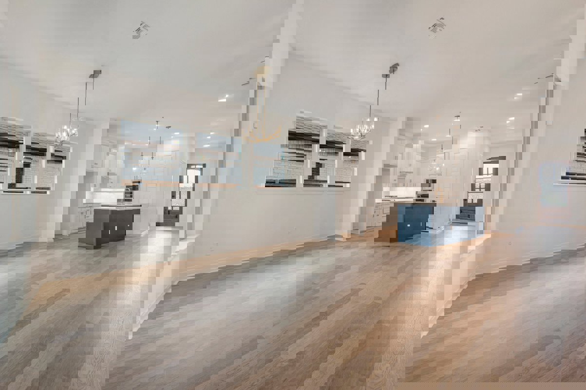 Throughout the home, wood flooring, modern hardware and elegant lighting complete the cohesive design. Every detail contributes to a refined environment suited for both everyday living and entertaining.