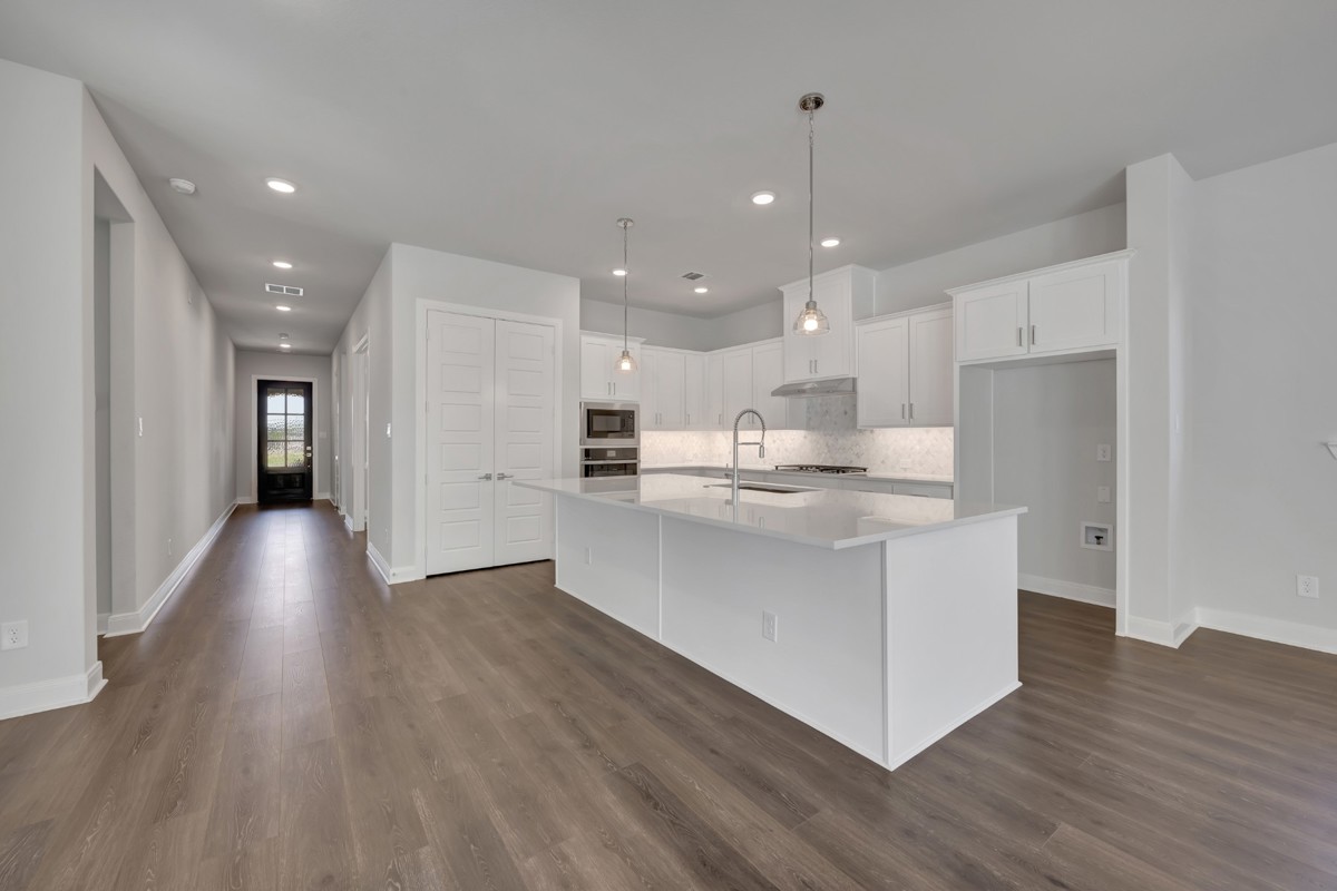 Warm wood floors flow throughout the main living areas and into the spacious Owner’s Retreat, where a luxurious Super Shower in the Owner’s Bath provides a spa-like experience for ultimate relaxation. The 2.5-car garage adds convenience with ample space for storage, hobbies, or organization.