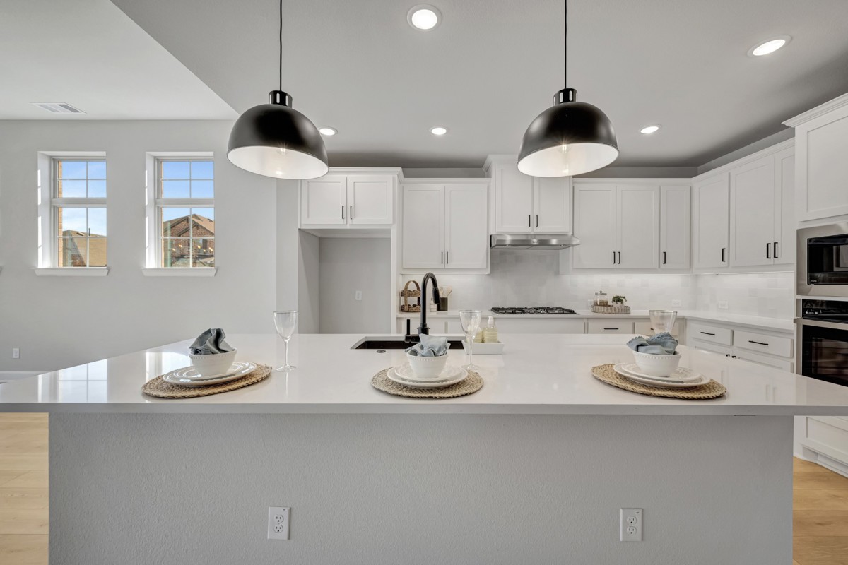 Enjoy collaborative culinary adventures in the showroom-style kitchen, which features a sleek island and a superb culinary atmosphere.