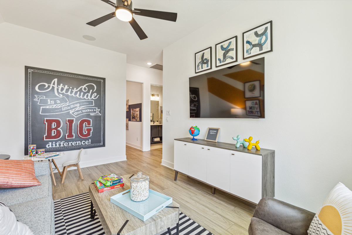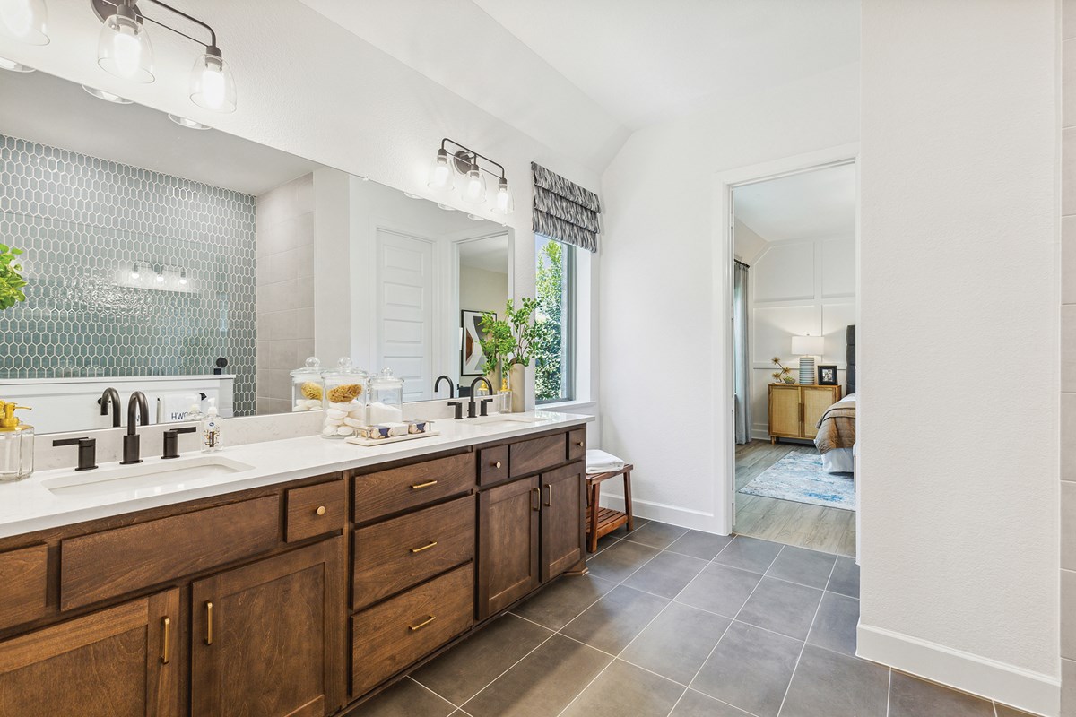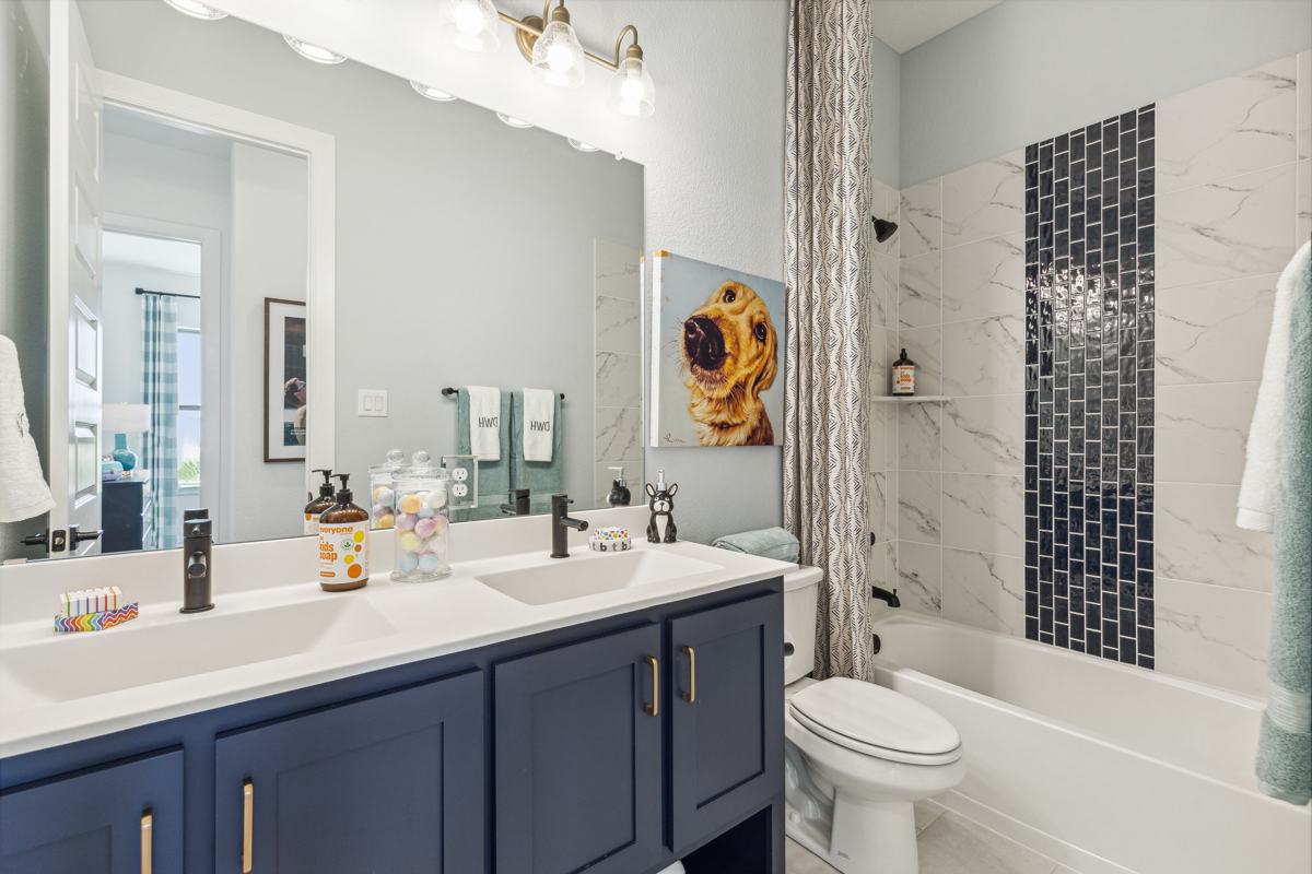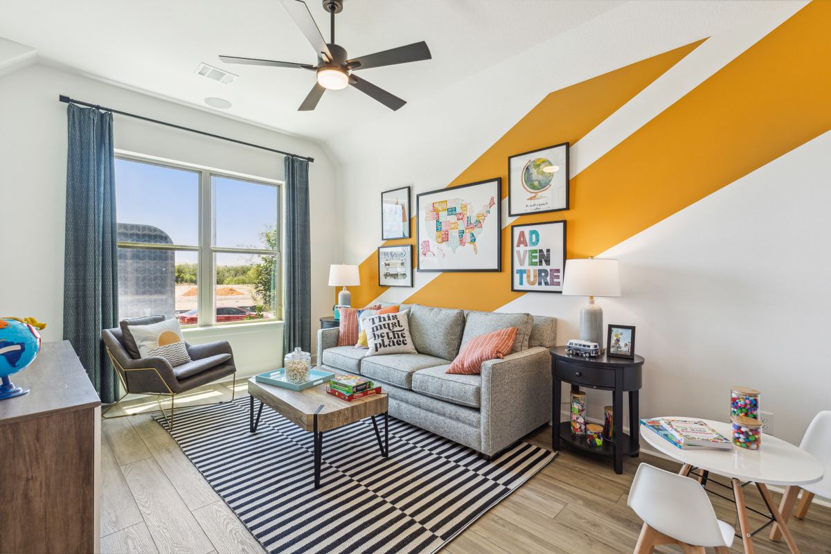 The Owner’s Retreat offers a peaceful escape with large windows and a spa-inspired bath, complete with a striking super shower and beautiful tilework. Thoughtfully tucked between the secondary bedrooms, a versatile retreat space provides the perfect spot for a playroom, media area, or private lounge offering flexibility to fit your lifestyle.
