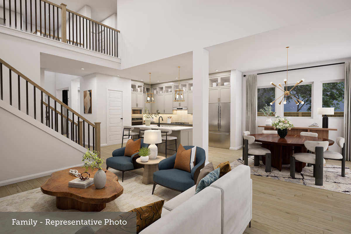 This 5- bedroom homes is a real stunner! The Bluebonnet is a designer crafted home home in Fate, Texas. Natural daylight fills the home. The 2- story family room and open concept living. make gathering only more special. The upstairs is designed with a game room with fun in mind.