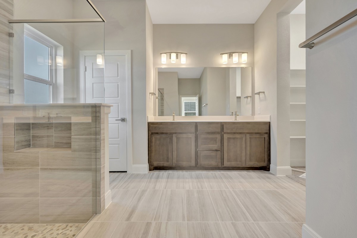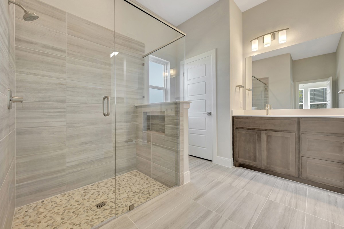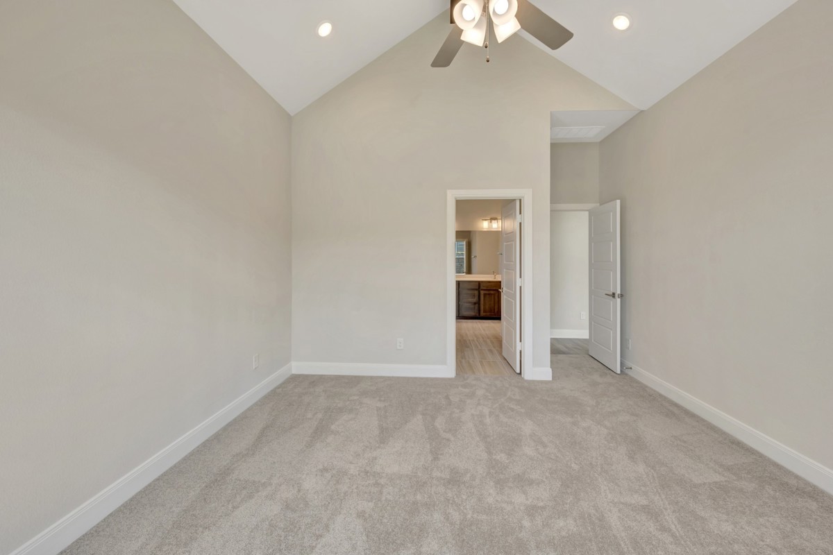 The Owner's Retreat features a vaulted ceiling for a touch of grandeur, while light hardwood floors and natural tile throughout the home bring a sense of warmth and tranquility. Outside, the timeless farmhouse-style exterior welcomes you with its inviting charm, and the 3-car tandem garage offers generous space for vehicles and storage.