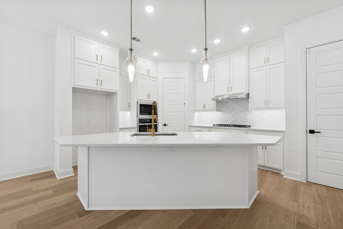 Designed for those who refuse to compromise on space or style, The Lashbrook by David Weekley Homes is packed with high-end features. At its heart is a striking hexagonal kitchen island—a unique centerpiece that enhances both functionality and flow.