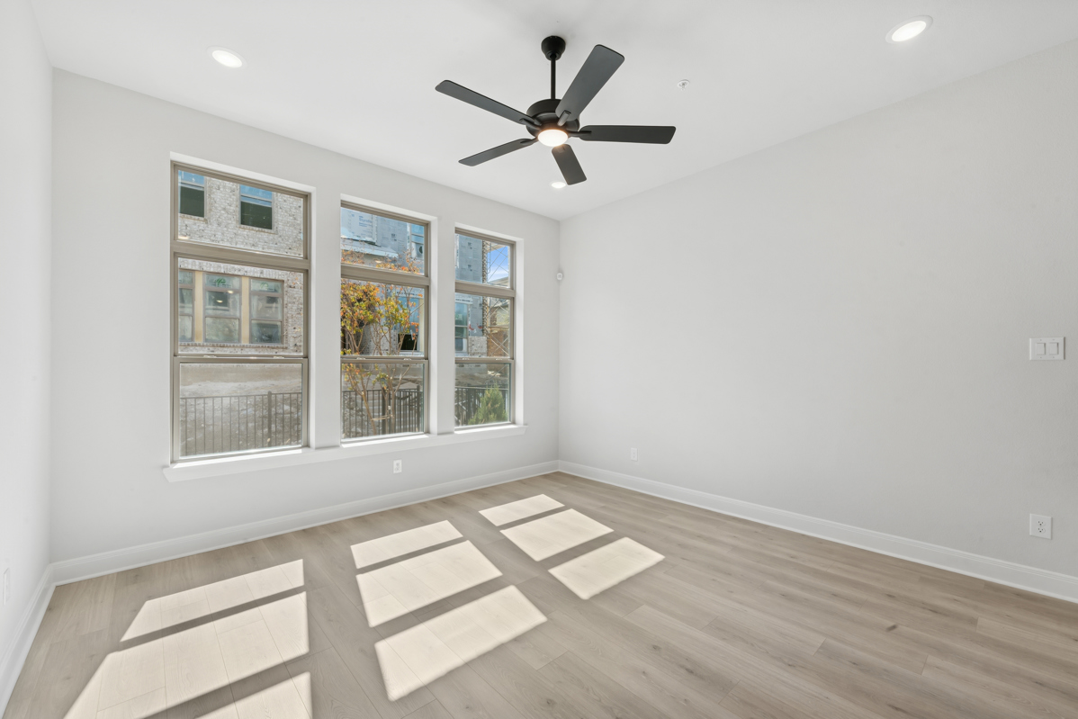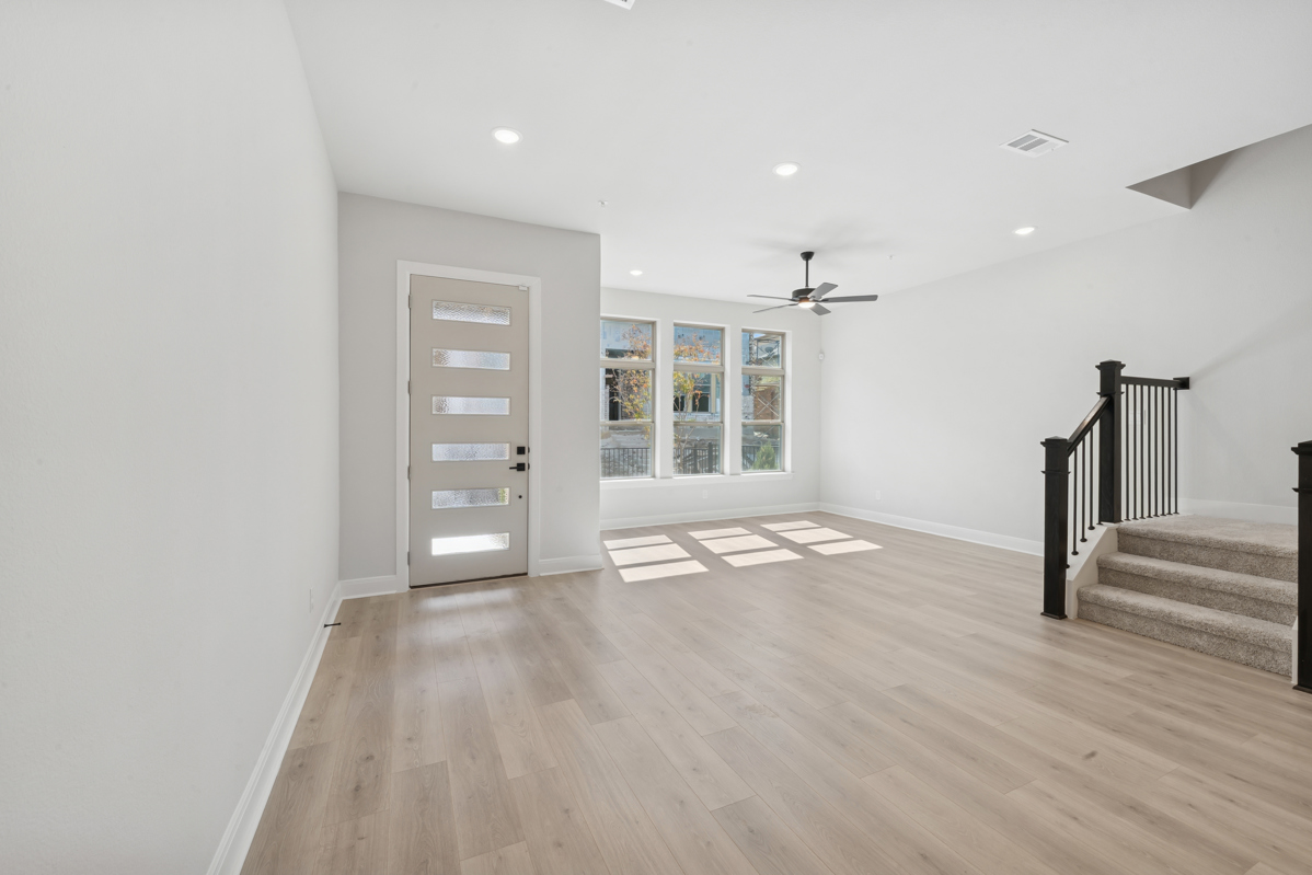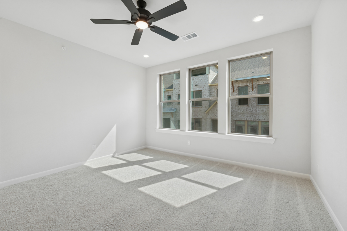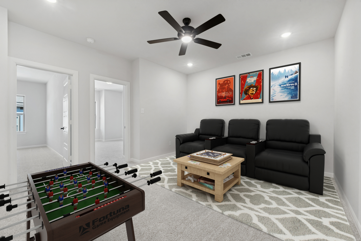 Upstairs, the Owner’s Retreat is positioned away from the secondary bedrooms for added privacy, while a flex retreat area provides a distinct space for work or relaxation without disrupting the flow of the home.