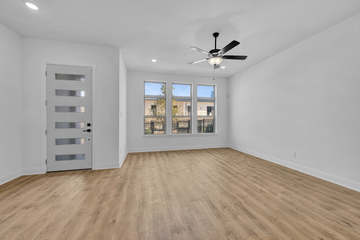 Upstairs, the Owner’s Retreat offers a spa-like en-suite bath with dual vanities, a soaking tub, walk-in shower, and a generous walk-in closet. Two additional bedrooms, a full bath, and a flex space retreat, provide all the essentials of a standalone home.