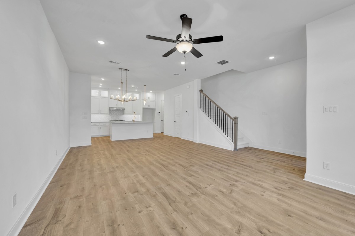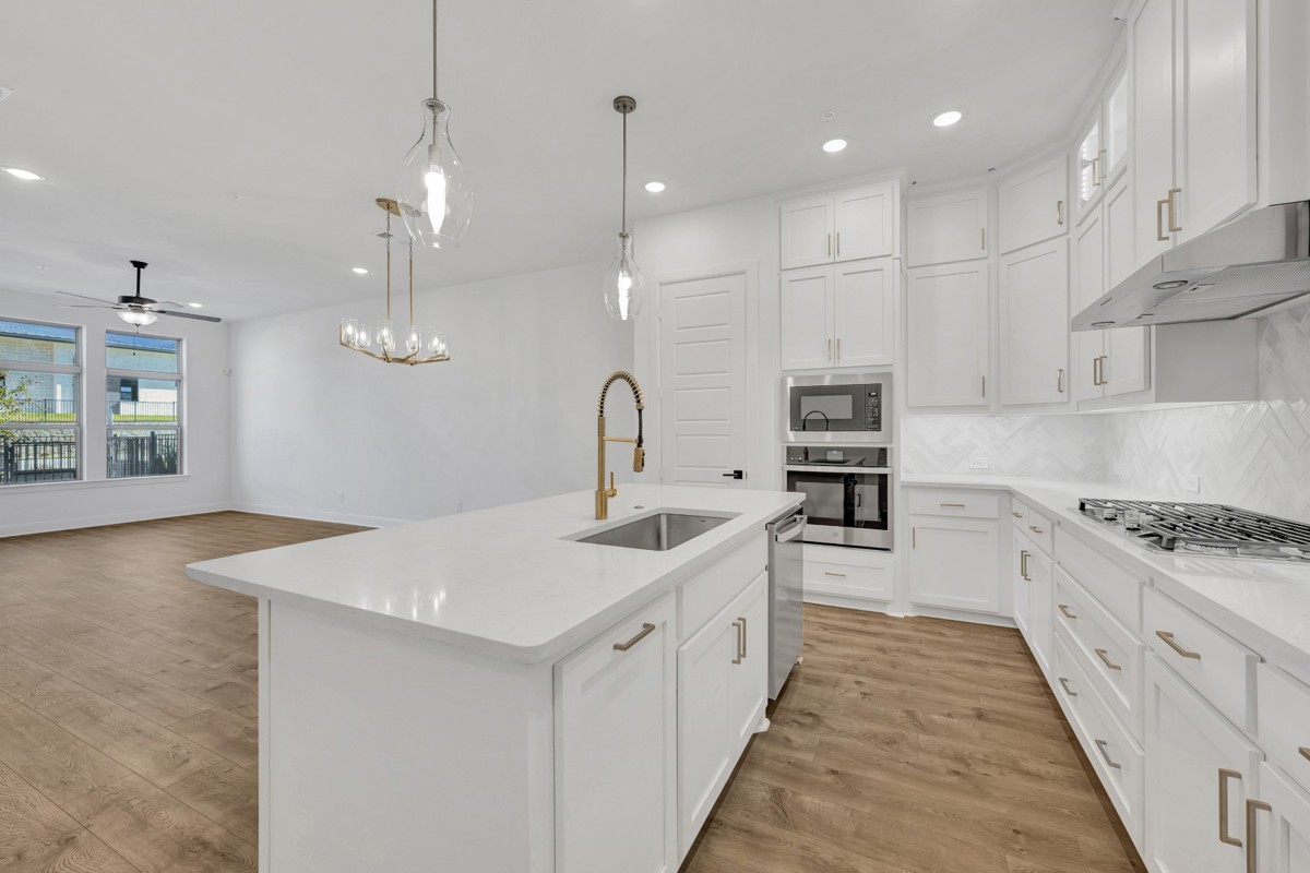 The Julien by David Weekley Homes is a home that delivers the space, comfort, and functionality of a single-family home without the upkeep. Its open-concept design features a spacious family and dining area, a beautiful kitchen with an island, plenty of cabinetry, and a pantry.