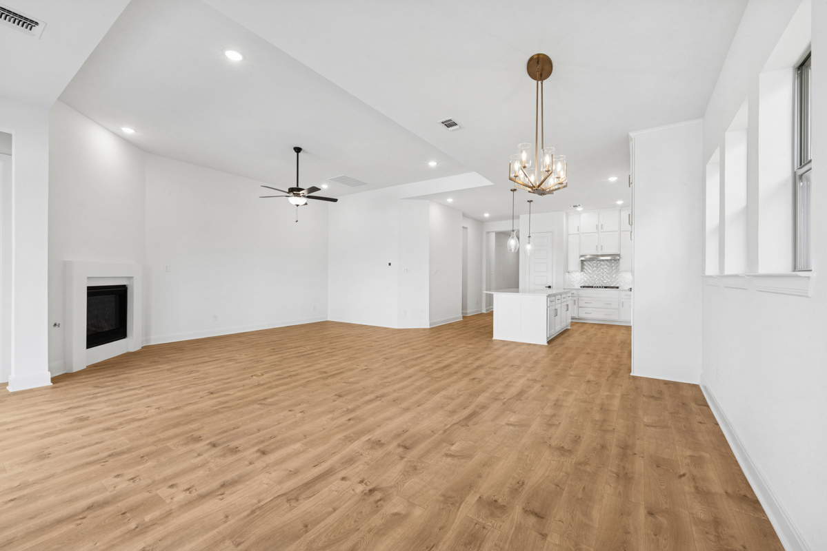 The open-concept floor plan in this David Weekley home offers the interior design freedom to create your ideal space. Explore culinary delights and collaborative cuisine experiences in the gourmet kitchen.