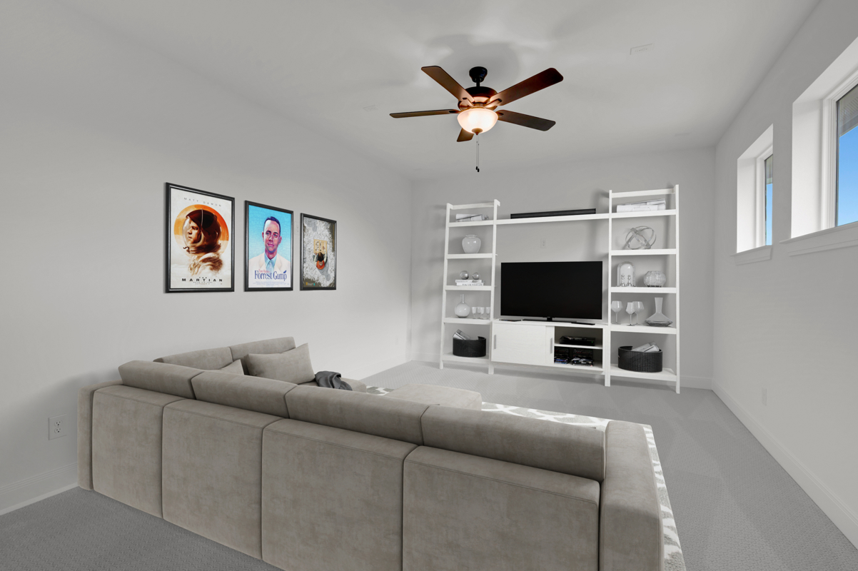 Upstairs, a game room and dedicated media room provide flexible options for entertainment and leisure. The Owner's Retreat features vaulted ceilings along with a spa inspired bath that includes a garden tub and separate shower.