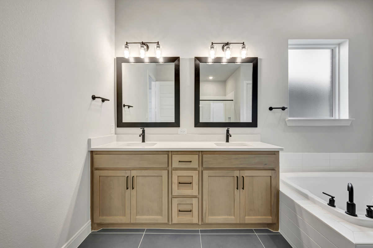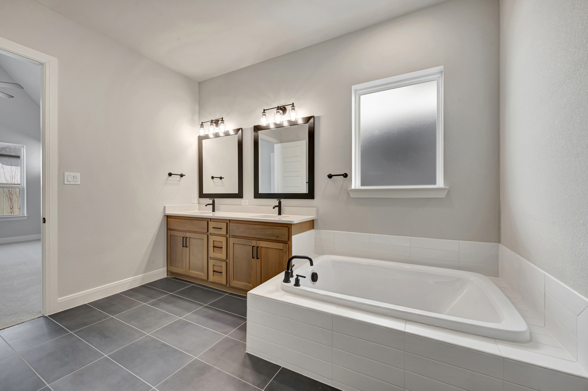 The owner’s bathroom offers a spa-like escape with a large drop-in soaking tub and separate shower. Every bedroom includes its own private bathroom for added convenience.