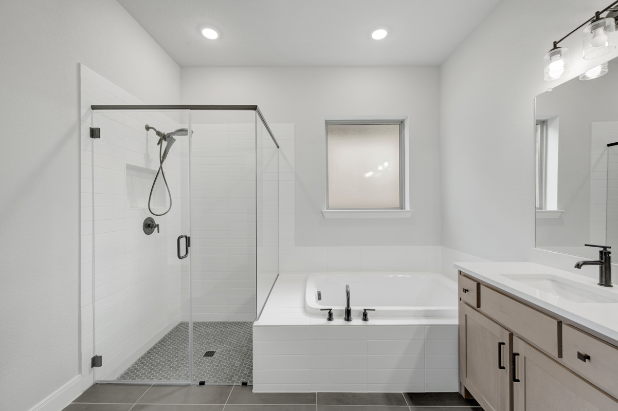 Ask our David Weekley Homes at Northlake Team about the superb upgrades to the kitchen and Owner’s Bath of this new home in Northlake, Texas!