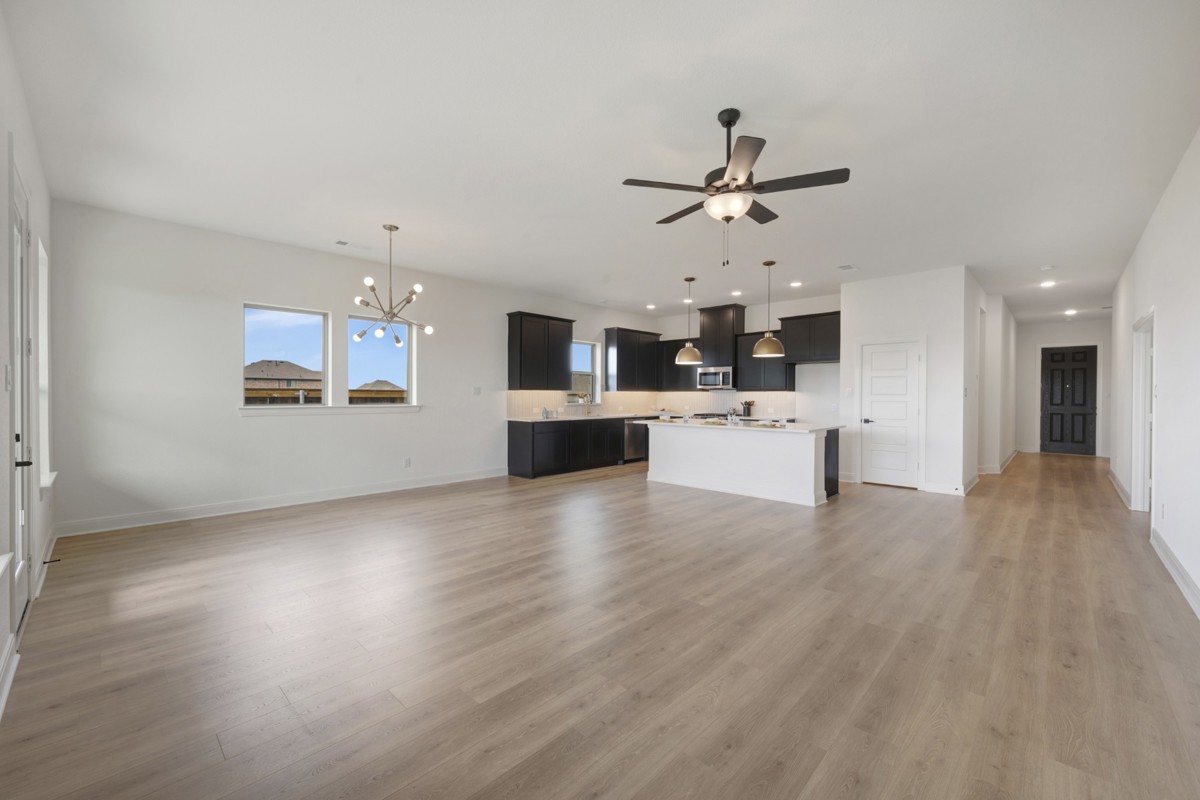 Across the home, luxury light wood-look flooring, soft neutral carpet, and Alabaster walls provide a warm and inviting ambiance. Additional highlights include contemporary lighting, black hardware accents, and an optional fireplace for cozy nights in.