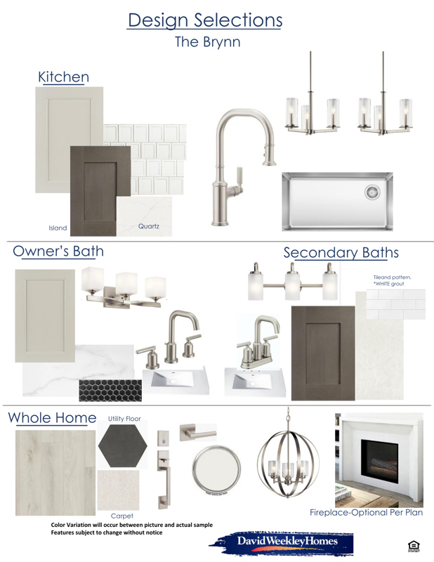 This home features the beautifully curated Brynn design scheme, showcasing a soft, sophisticated palette with warm neutrals and brushed nickel finishes throughout. The kitchen pairs light cabinetry with a rich contrasting island, quartz countertops, and a classic tile backsplash for a timeless look. A sleek stainless undermount sink, coordinating faucet, and elegant pendant lighting add both function and style.