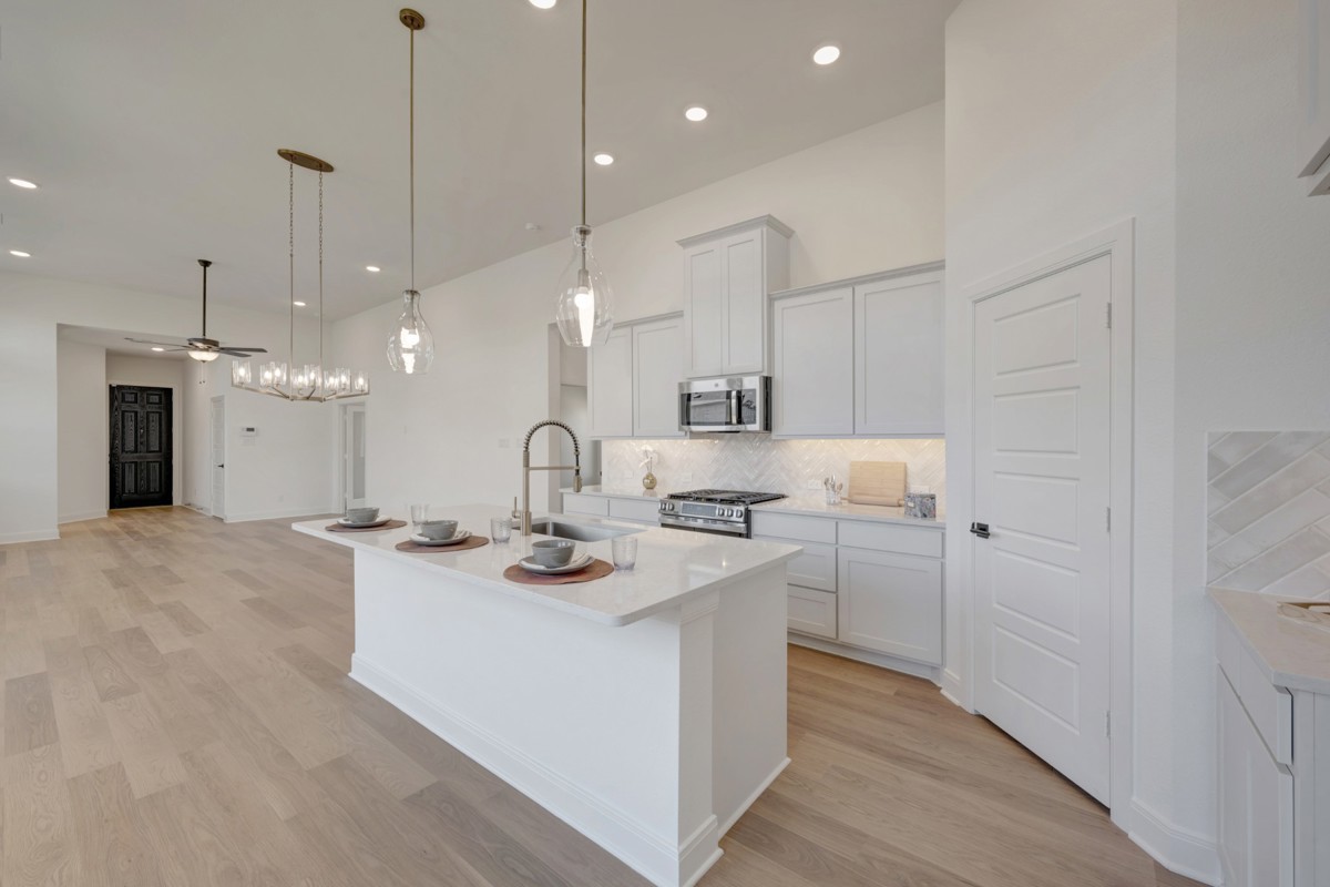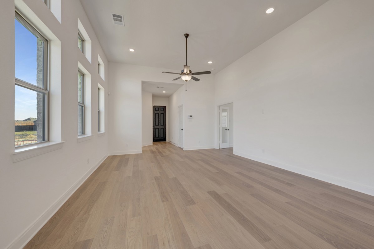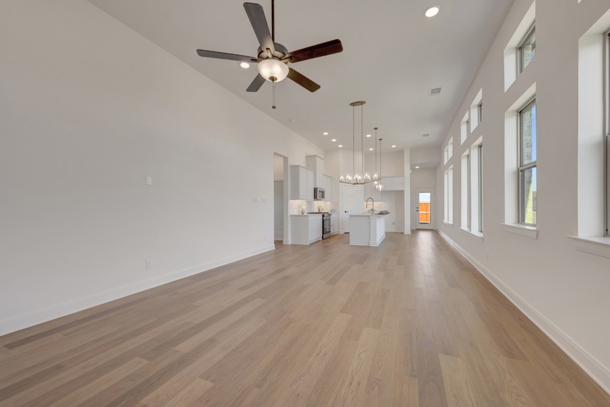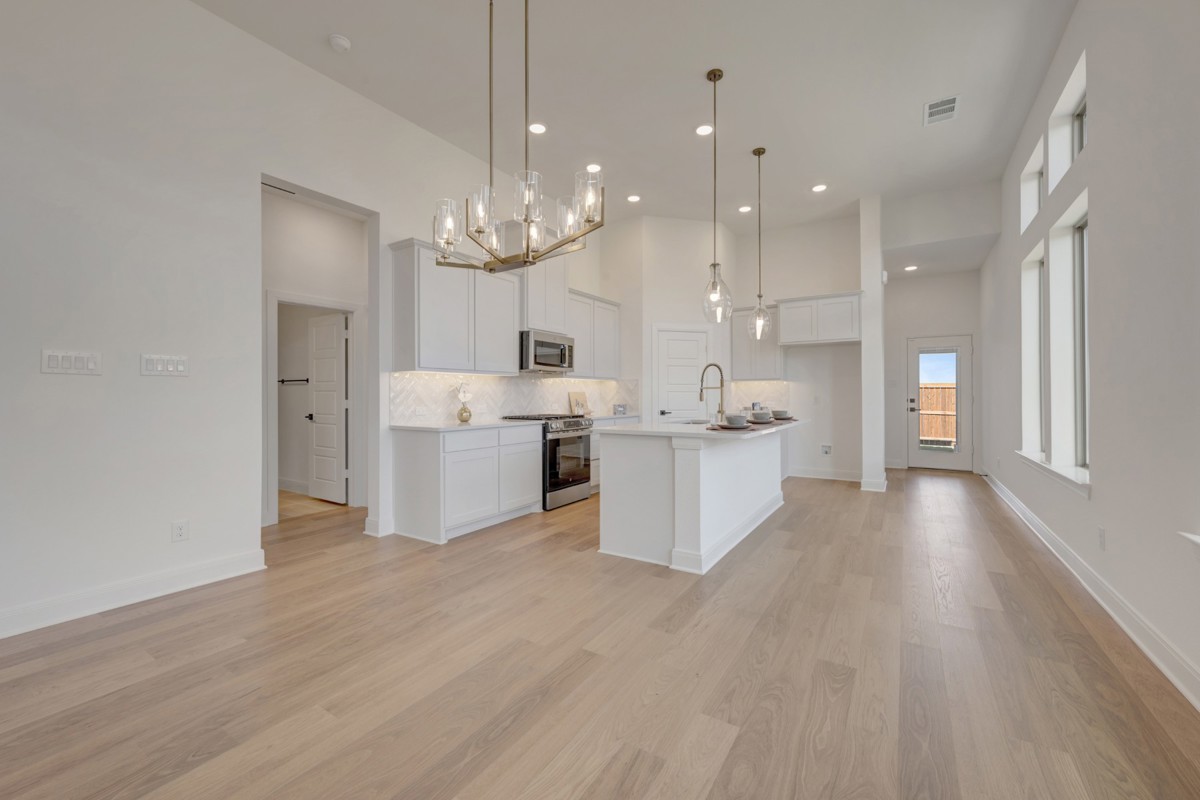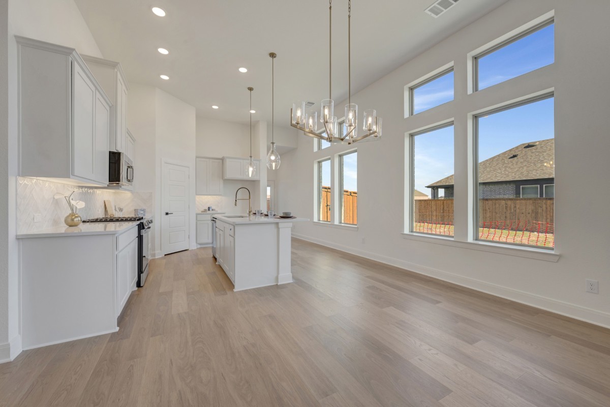 Designed with livability in mind, this home features soaring 12-foot ceilings in the kitchen, dining, and family room, creating an open and airy space perfect for everyday living and entertaining.