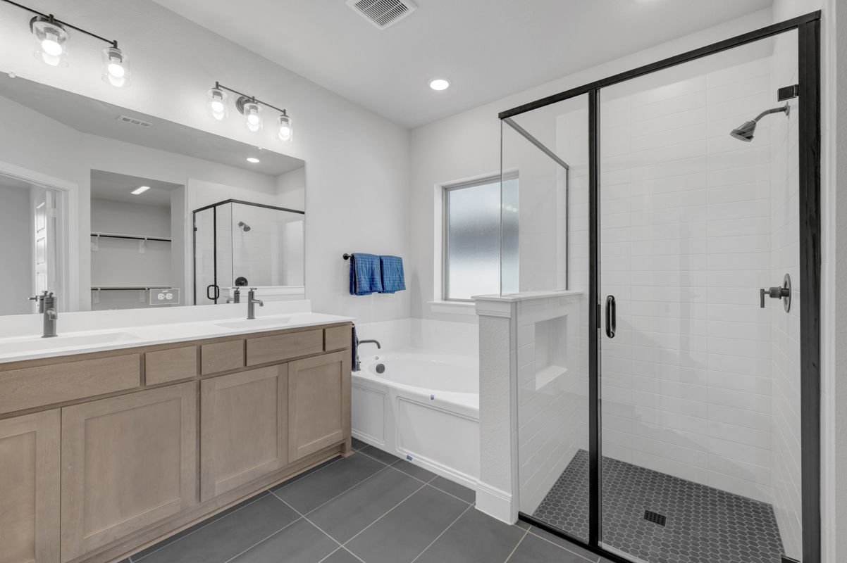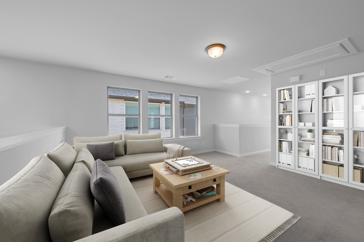 Upstairs, a spacious retreat area offers flexible living space—ideal for a media room, game room, or lounge. The private owner’s retreat includes a luxurious slide-in tub, creating a perfect spot to unwind.