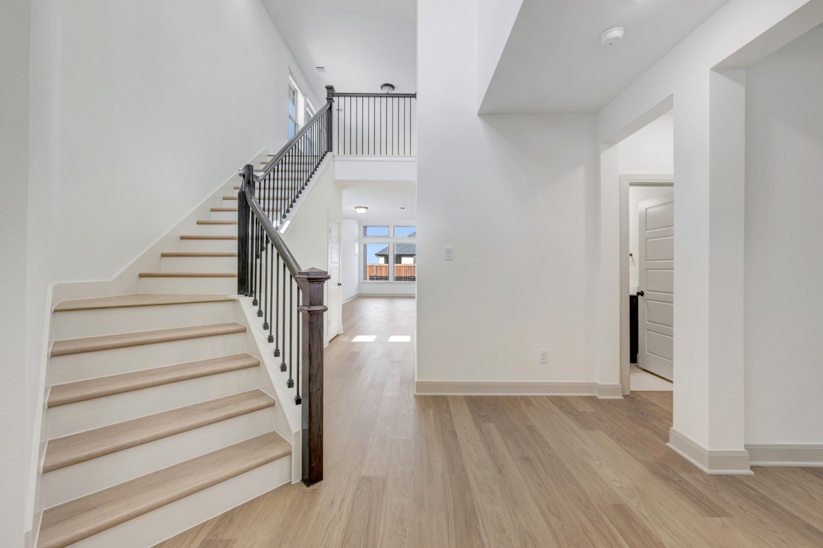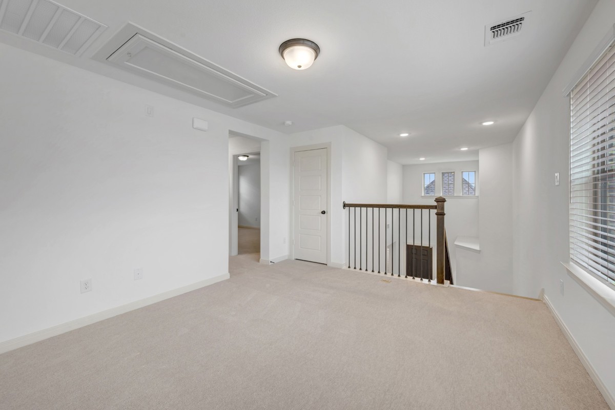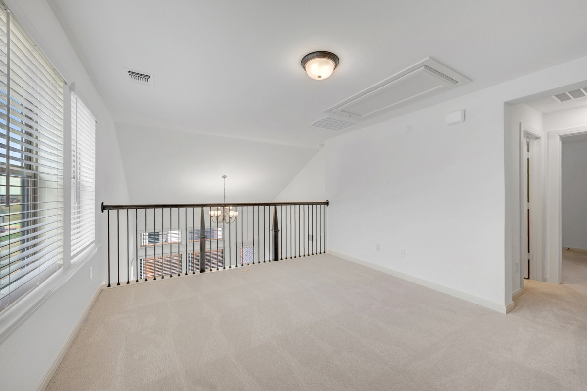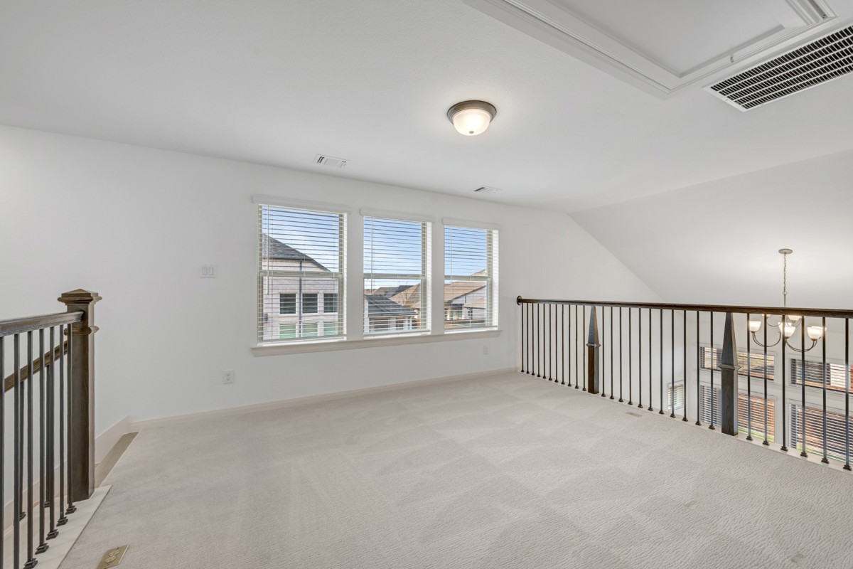 The Owner’s Retreat is a private sanctuary with a tray ceiling, a super shower, and refined finishes that elevate everyday comfort. Upstairs, an open loft with wrought-iron railing overlooks the living space below, offering a versatile area for play, work, or relaxation.