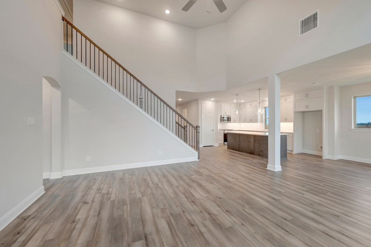 You’re welcomed into the Baltimore by soaring ceilings and dramatic vertical space that immediately evoke elegance and grandeur. To one side of the foyer, a secluded study offers privacy and quiet, while beyond, the great room, dining area, and kitchen meld into one expansive, open-concept zone bathed in light. On this main floor, you’ll also find the owner’s retreat, tucked away with its own en suite bathroom and generous walk-in closet, as well as a full guest bathroom and a powder room for additional convenience. The three-car garage attaches to this level, keeping everyday practicality close at hand. Upstairs, a loft-style retreat serves as an informal living hub, flanked by three secondary bedrooms — one with its own full bath, the other two sharing another full bath. Throughout, this home balances drama with functionality: open, airy communal areas when you gather; discreet, restful spaces when you need calm.