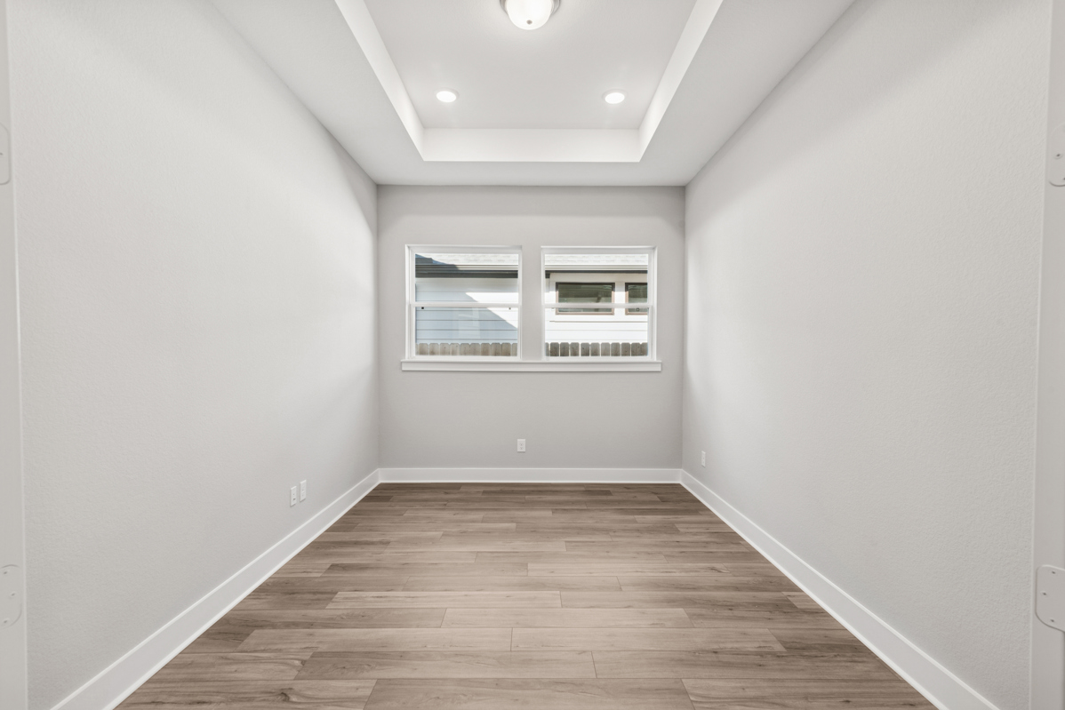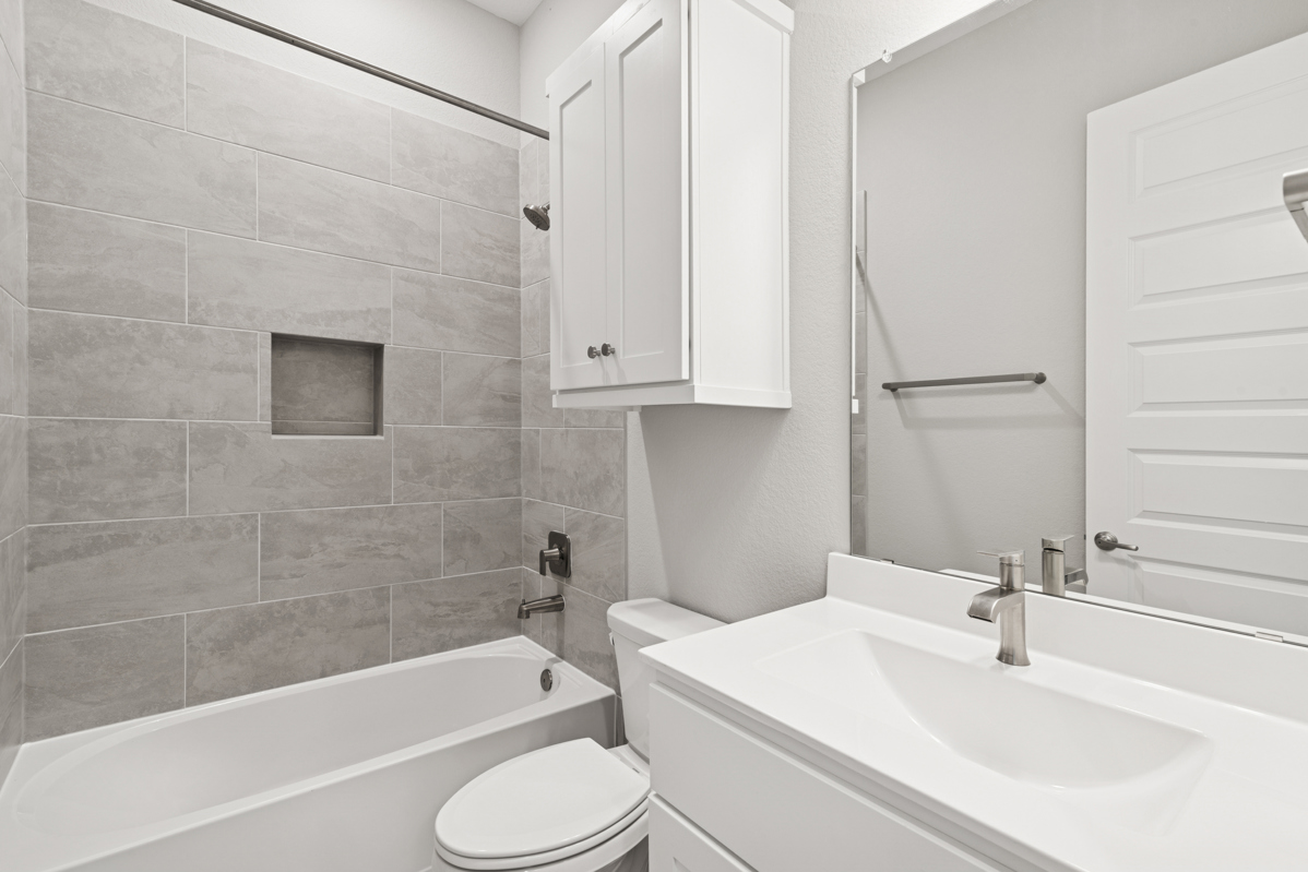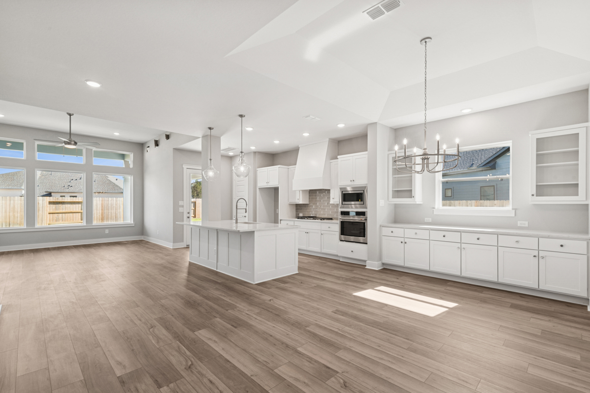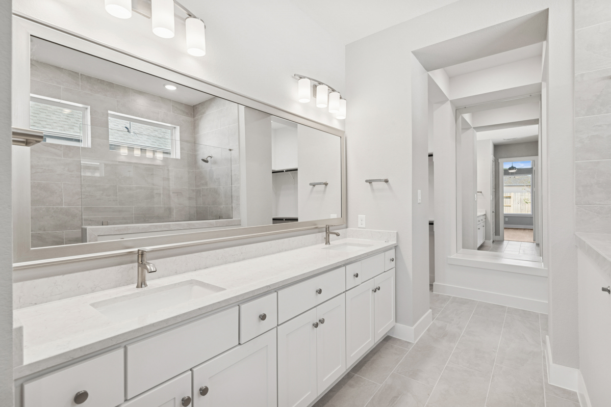 The modern farmhouse exterior adds charming curb appeal, blending timeless design with current trends. The luxurious Owner’s Bath serves as a private retreat, complete with a Super Shower featuring dual shower heads for a spa-like experience.