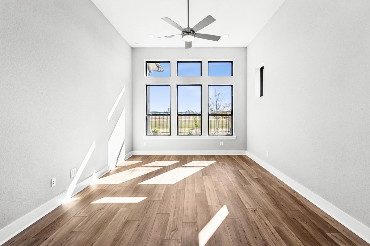A dedicated study, game room, and TV room offer versatile spaces for work, play, and relaxation. Enjoy outdoor living on the extended covered porch and appreciate the added privacy of having no back neighbors.